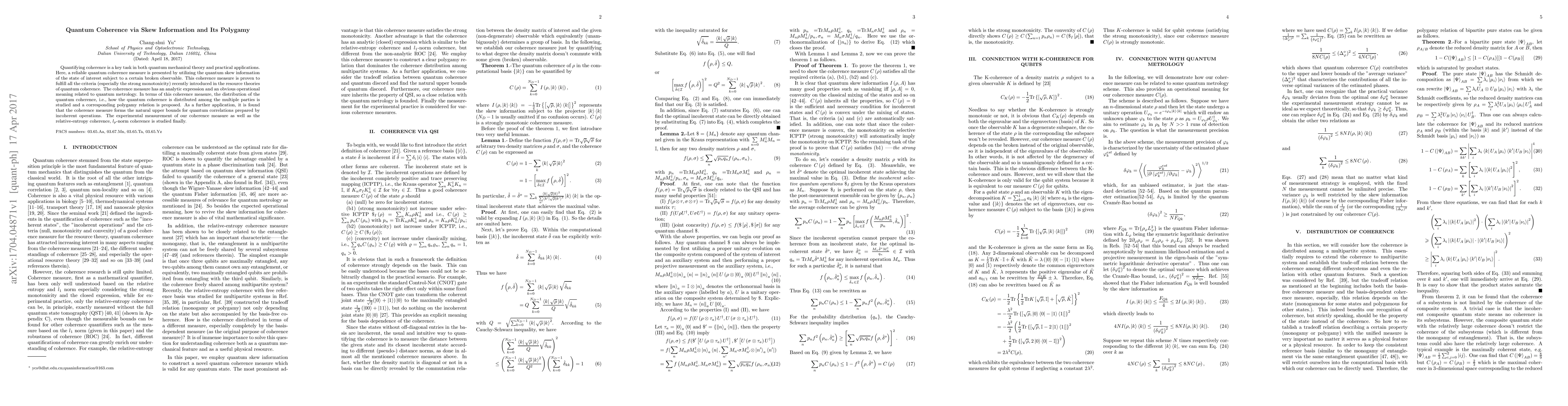 The research presents a unique approach to quantifying coherence using quantum skew information, offering an analytical expression and operational interpretation, along with a polygamy relation for multipartite systems.