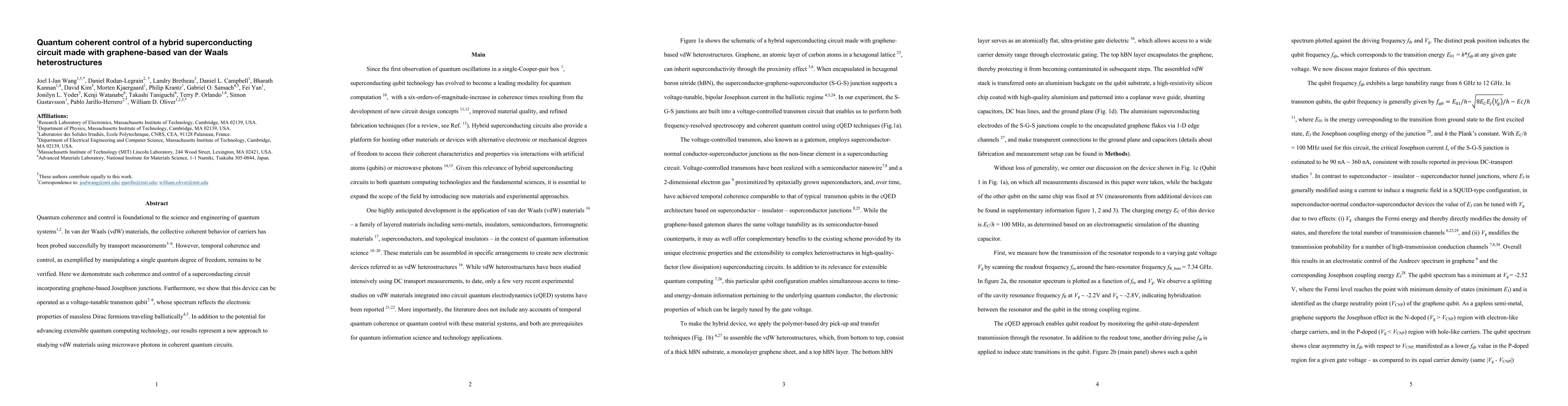 Researchers demonstrate quantum coherence and control in a graphene-based superconducting circuit, enabling manipulation of individual quantum states and potential advancements in quantum computing technology.