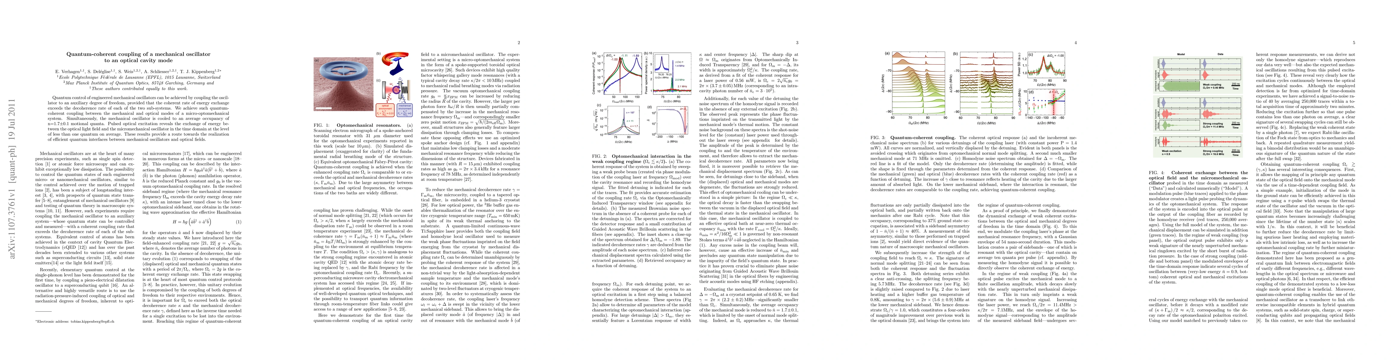 This paper demonstrates quantum-coherent coupling between a mechanical oscillator and an optical cavity mode in a micro-optomechanical system, achieving energy exchange rates that surpass decoherence rates. The mechanical oscillator is cooled to an average occupancy of 1.7 ± 0.1 quanta, paving the way for efficient quantum interfaces between mechanical and optical systems.