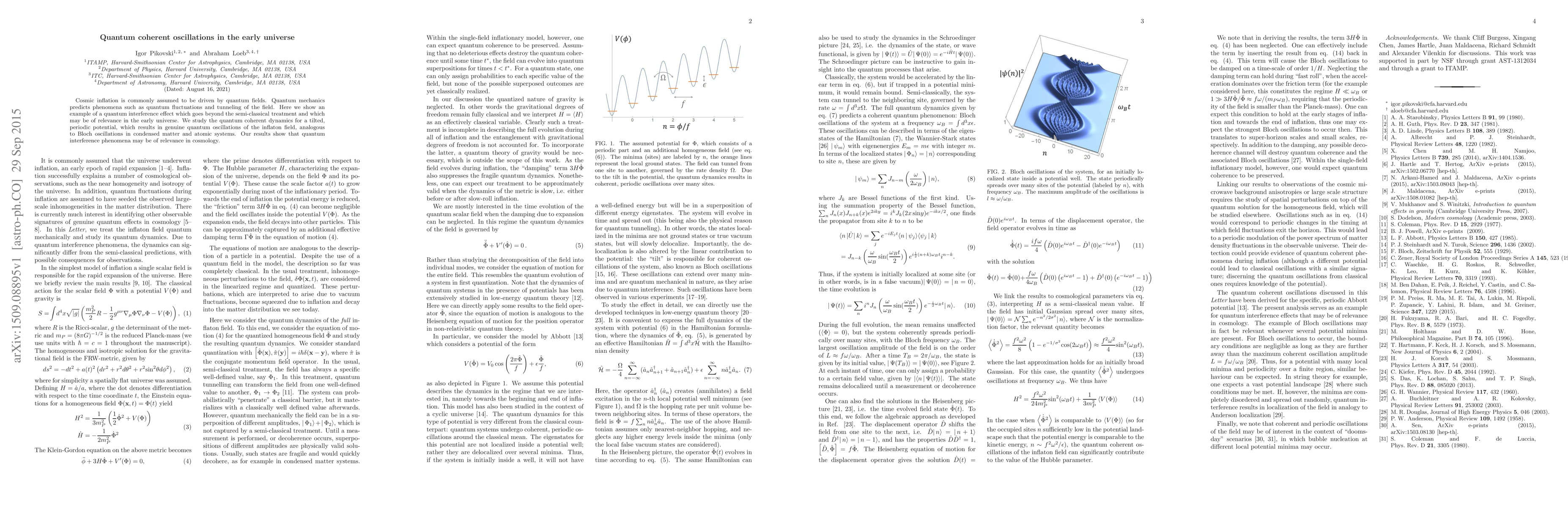 This paper investigates quantum coherent oscillations in the early universe driven by quantum fields during cosmic inflation, demonstrating quantum interference effects beyond semi-classical treatments. It finds that quantum dynamics in a tilted, periodic potential can lead to genuine quantum oscillations of the inflaton field, analogous to Bloch oscillations, suggesting potential cosmological relevance.