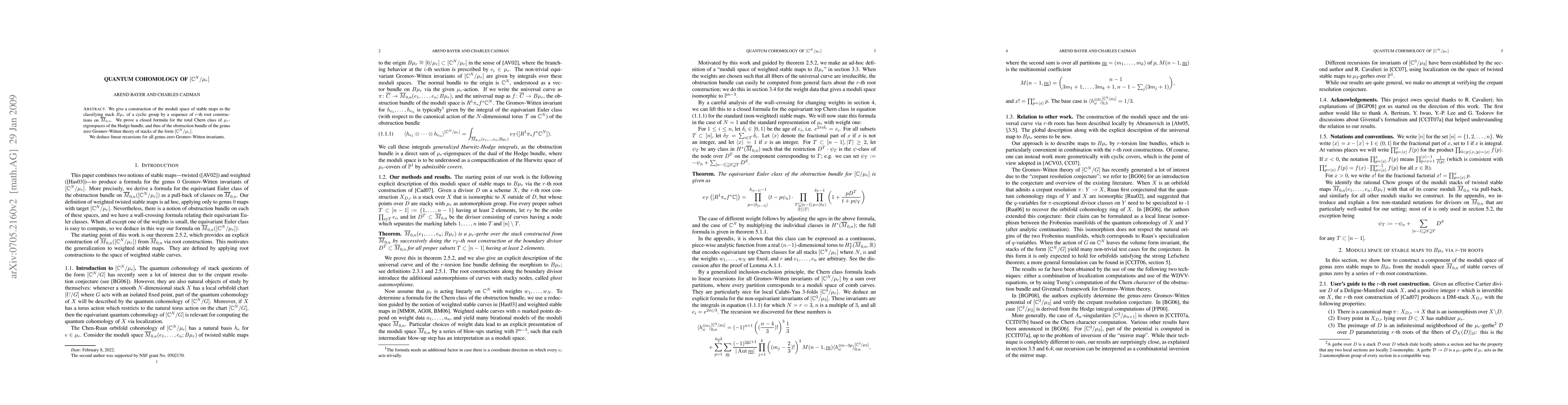 We give a construction of the moduli space of stable maps to the classifying stack B\mu_r of a cyclic group by a sequence of r-th root constructions on M_{0, n}. We prove a closed formula for the total Chern class of \mu_r-eigenspaces of the Hodge bundle, and thus of the obstruction bundle of the genus zero Gromov-Witten theory of stacks of the form [C^N/\mu_r]. We deduce linear recursions for all genus-zero Gromov-Witten invariants.