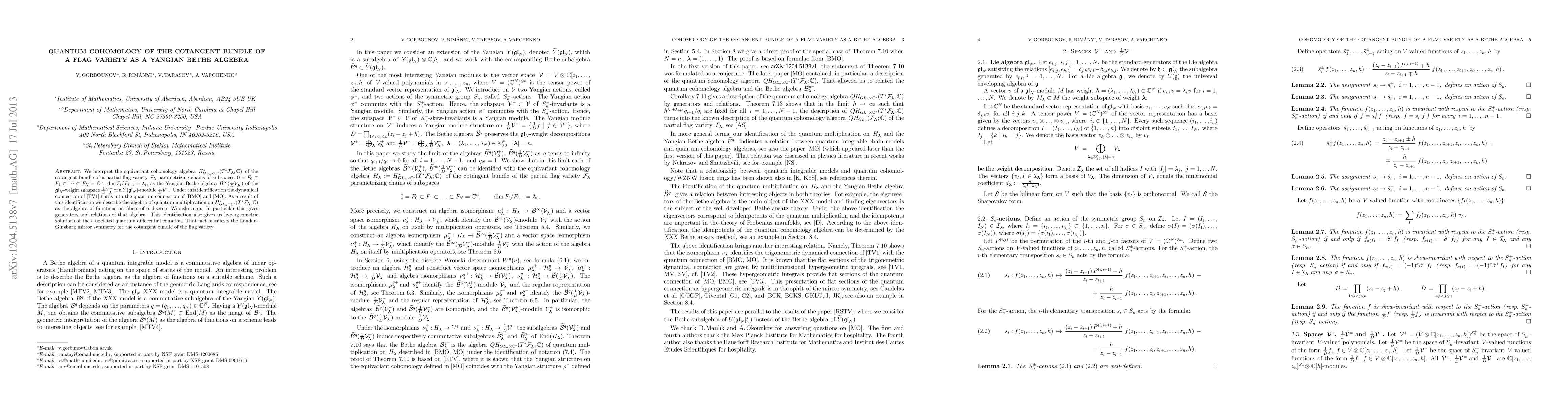 This paper interprets the equivariant cohomology of the cotangent bundle of a flag variety as the Yangian Bethe algebra, showing the dynamical connection translates to the quantum connection, and describes the algebra of quantum multiplication in terms of a discrete Wronski map. This establishes hypergeometric solutions and reveals Landau-Ginzburg mirror symmetry.