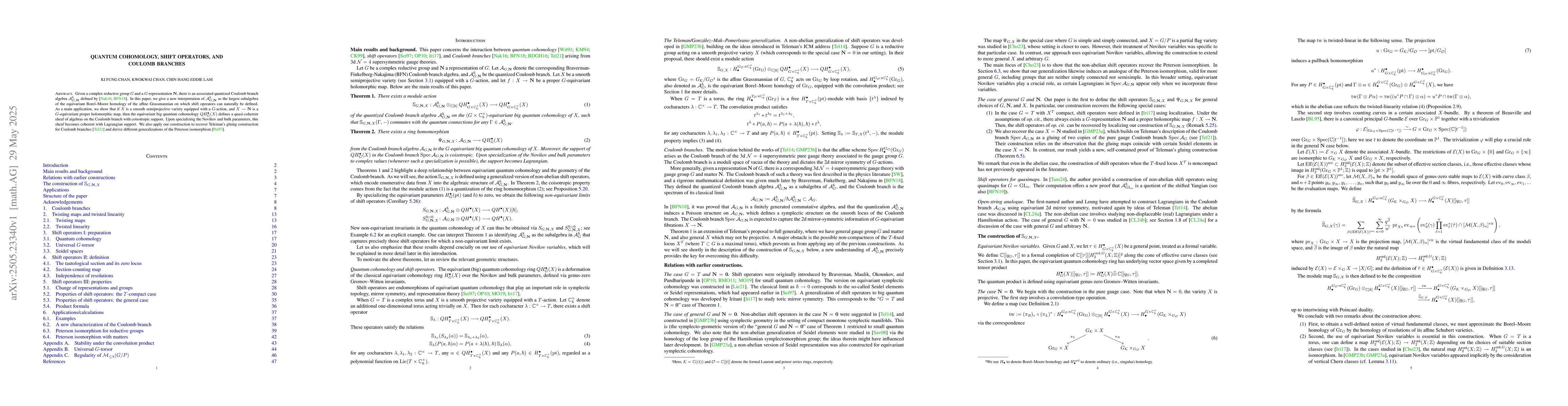 The paper introduces a novel interpretation of the quantized Coulomb branch algebra and establishes a connection to shift operators in equivariant Borel-Moore homology.