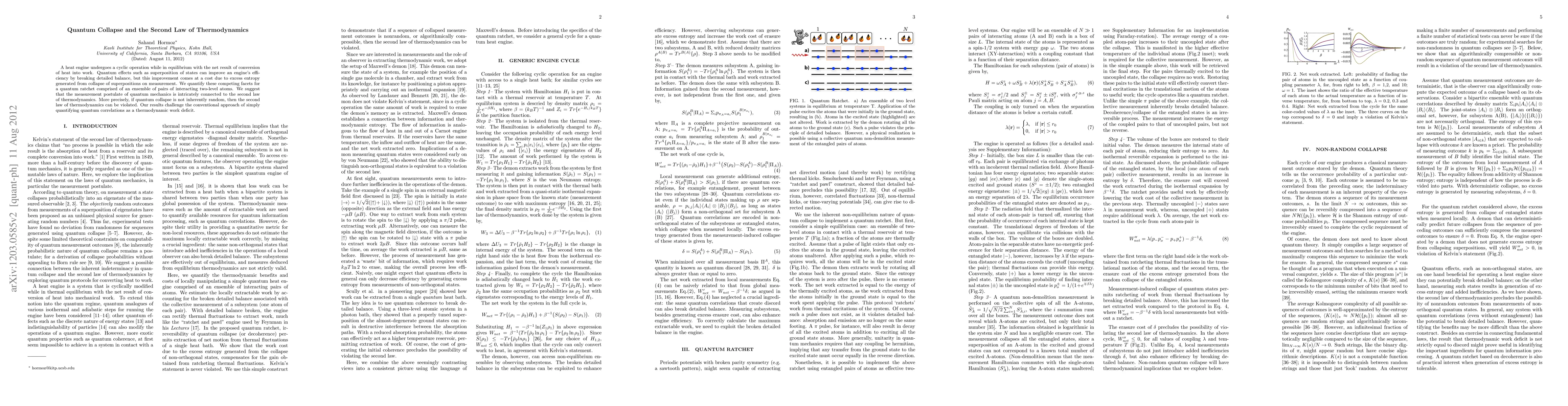 This paper investigates how quantum superpositions can enhance the efficiency of a quantum heat engine, yet this improvement generates excess entropy due to quantum collapse upon measurement. It concludes that the measurement postulate of quantum mechanics may be linked to the second law of thermodynamics, suggesting that non-random quantum collapse could violate thermodynamic laws.