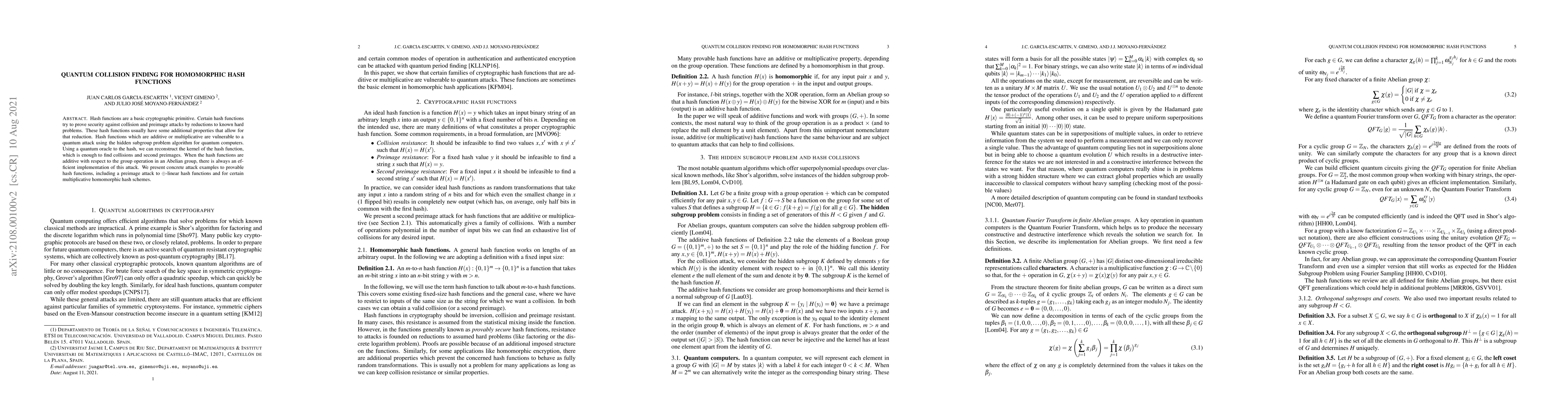 The work extends previous quantum collision finding methods to specifically target homomorphic hash functions, revealing new vulnerabilities in these cryptographic primitives.