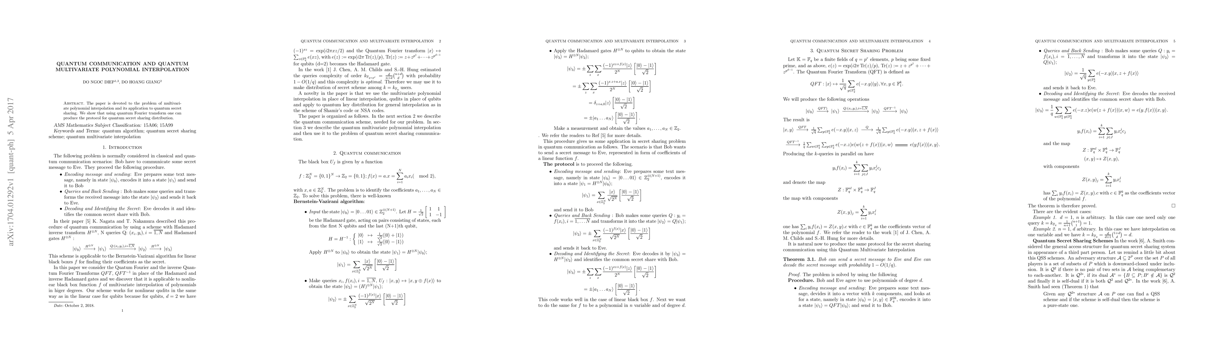 The paper is devoted to the problem of multivariate polynomial interpolation and its application to quantum secret sharing. We show that using quantum Fourier transform one can produce the protocol for quantum secret sharing distribution.