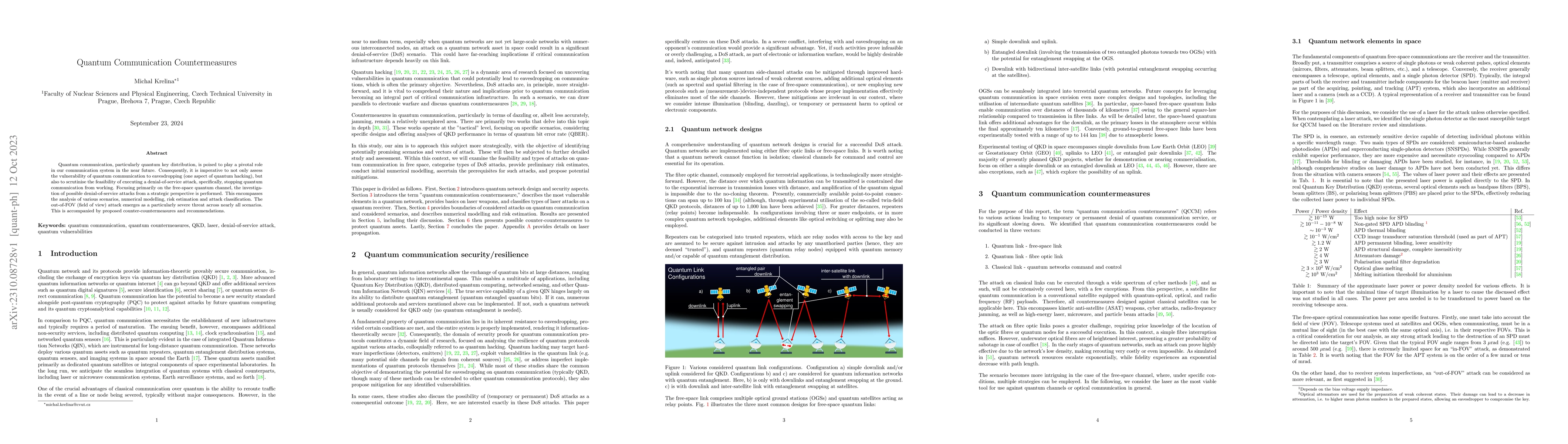 This paper investigates the vulnerabilities of quantum communication, especially quantum key distribution, to eavesdropping and denial-of-service attacks, focusing on free-space channels. It identifies the out-of-FOV attack as a significant threat and proposes countermeasures and recommendations to mitigate these risks.