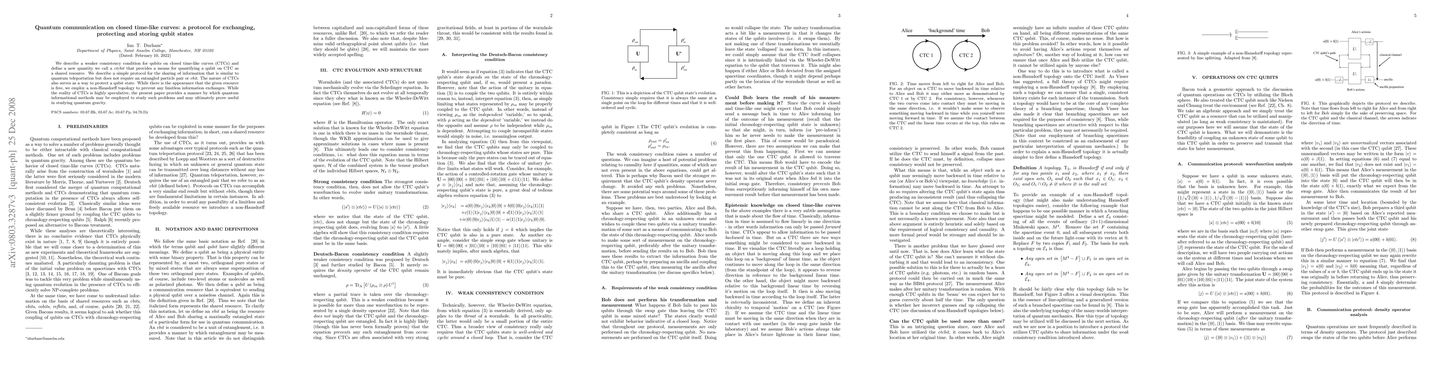 This paper introduces a ctcbit to quantify a qubit on a closed time-like curve, proposing a protocol for information sharing akin to quantum teleportation without entanglement. It employs a non-Hausdorff topology to restrict limitless information transfer, suggesting potential applications in quantum gravity studies.