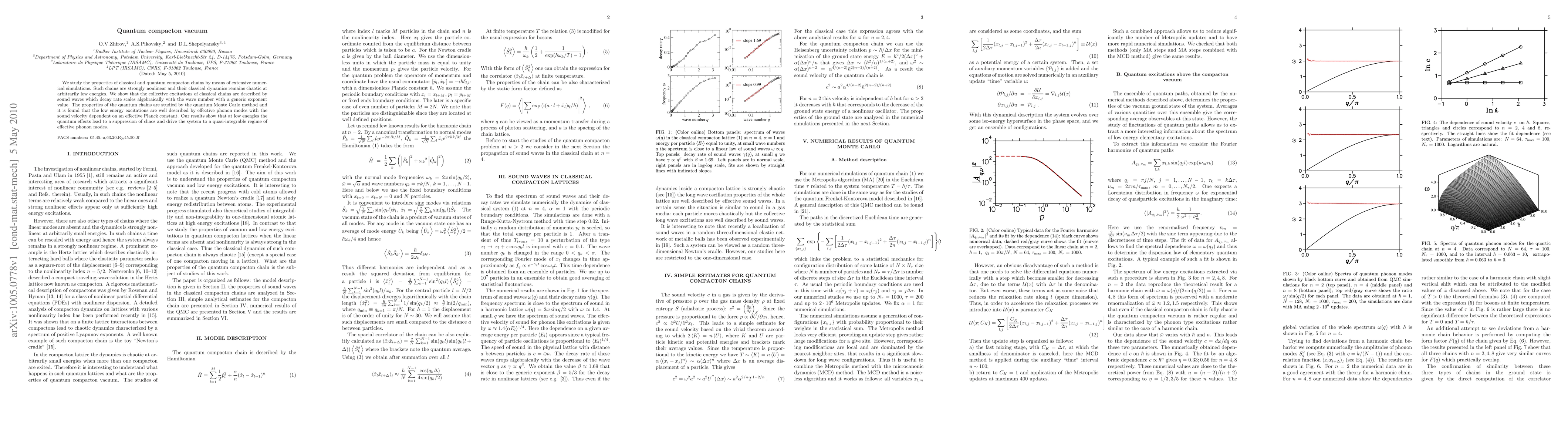 We study the properties of classical and quantum compacton chains by means of extensive numerical simulations. Such chains are strongly nonlinear and their classical dynamics remains chaotic at arbitrarily low energies. We show that the collective excitations of classical chains are described by sound waves which decay rate scales algebraically with the wave number with a generic exponent value. The properties of the quantum chains are studied by the quantum Monte Carlo method and it is found that the low energy excitations are well described by effective phonon modes with the sound velocity dependent on an effective Planck constant. Our results show that at low energies the quantum effects lead to a suppression of chaos and drive the system to a quasi-integrable regime of effective phonon modes.