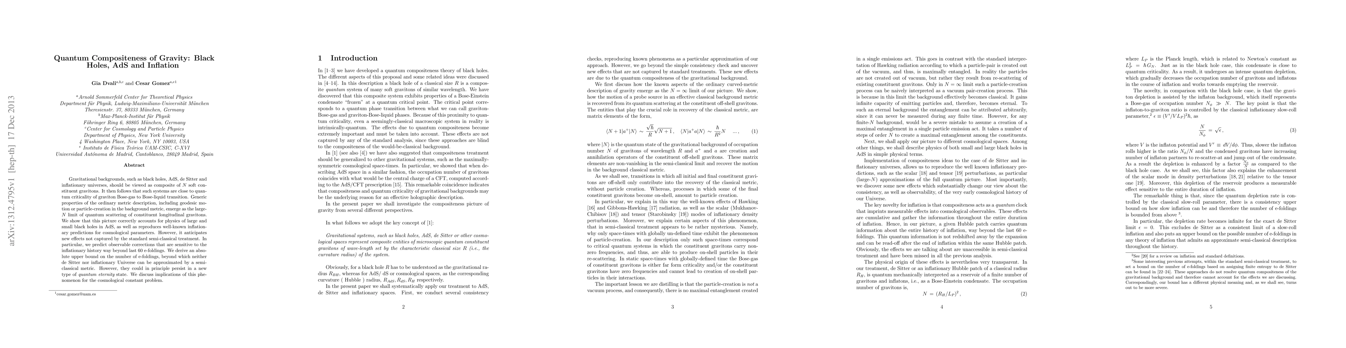 The novelty of this work lies in its composite quantum gravity perspective, which offers new insights into black holes, AdS, and inflationary universes, predicting observable effects not captured by standard semi-classical treatments.