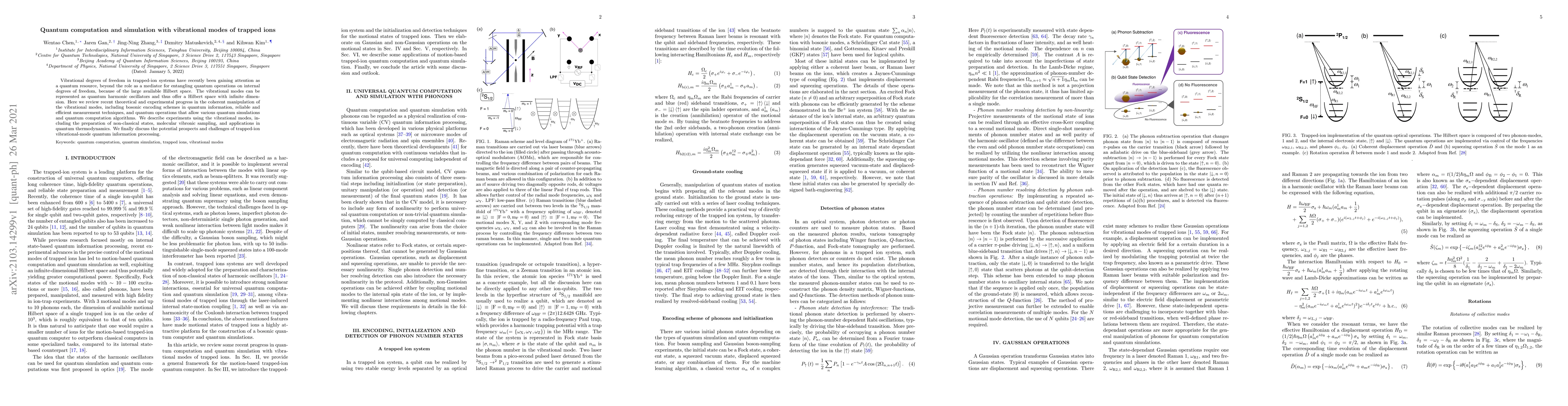 This paper reviews advancements in utilizing trapped ions' vibrational modes for quantum computation and simulation, highlighting theoretical and experimental progress in coherent manipulation, quantum information encoding, and quantum operations. It also discusses experimental applications and future prospects for trapped-ion systems in quantum information processing.