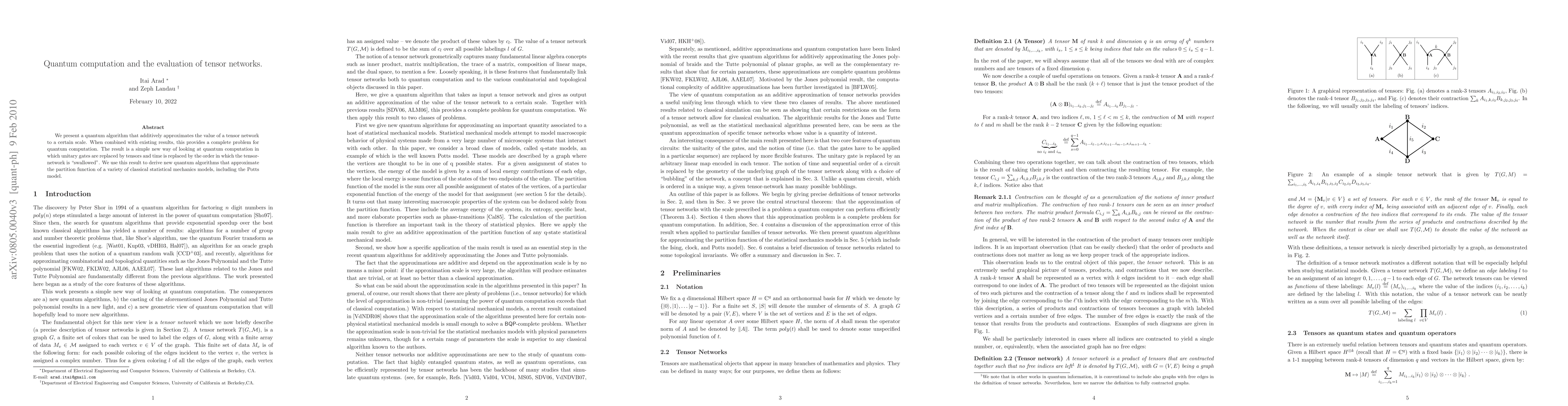 We present a quantum algorithm that additively approximates the value of a tensor network to a certain scale. When combined with existing results, this provides a complete problem for quantum computation. The result is a simple new way of looking at quantum computation in which unitary gates are replaced by tensors and time is replaced by the order in which the tensor-network is "swallowed". We use this result to derive new quantum algorithms that approximate the partition function of a variety of classical statistical mechanics models, including the Potts model.