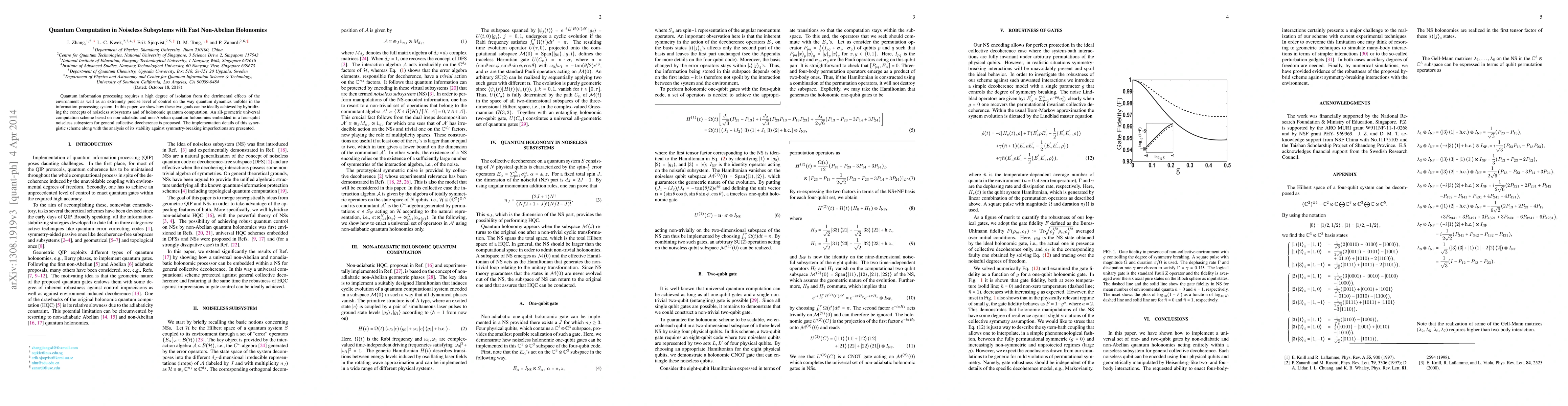 This paper proposes a hybrid approach combining noiseless subsystems and holonomic quantum computation to achieve precise quantum information processing, introducing a four-qubit scheme based on non-Abelian quantum holonomies for universal computation and analyzing its stability against imperfections.