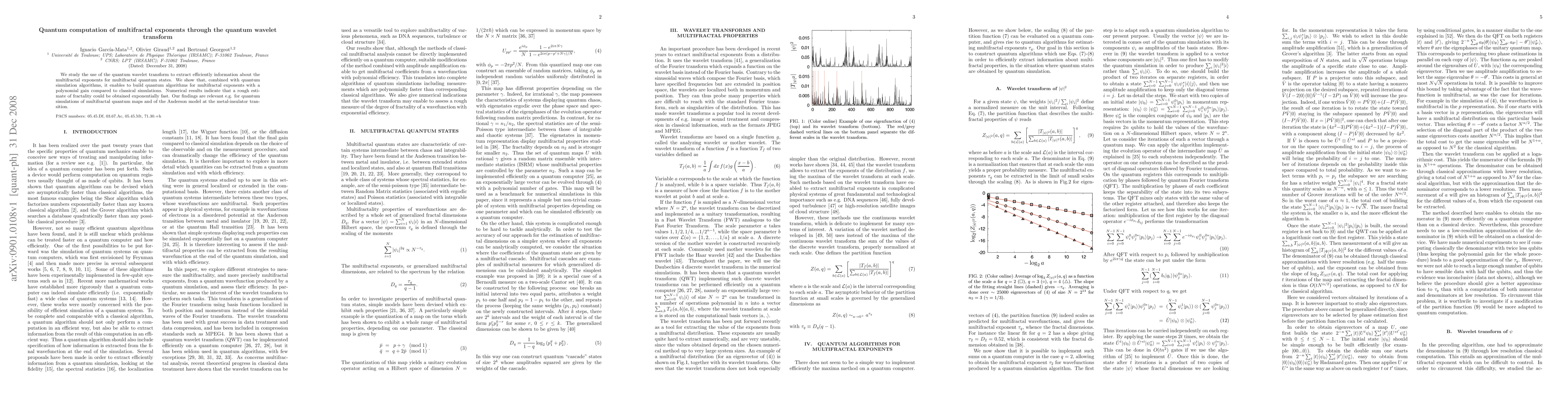 This paper explores the quantum wavelet transform's application in efficiently computing multifractal exponents for quantum states, demonstrating a polynomial speedup over classical methods. Numerical results suggest an exponential speedup for estimating fractality, with implications for quantum simulations of multifractal quantum maps and the Anderson model.