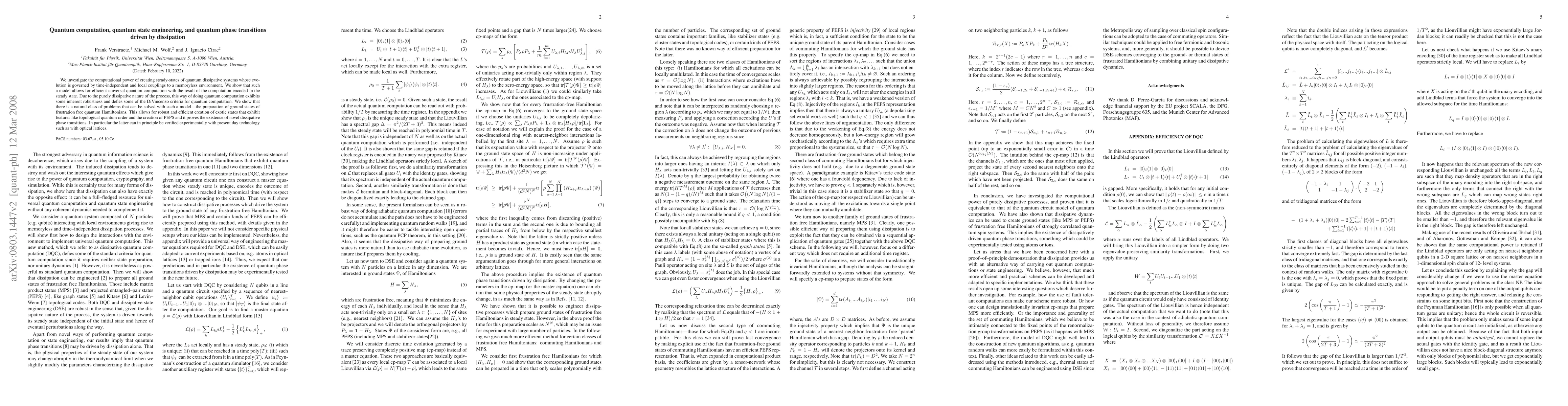 This paper explores the computational potential of quantum dissipative systems, revealing efficient universal quantum computation encoded in steady states, and demonstrating robustness against some DiVincenzo criteria. It also identifies a class of problems solvable by this model, including the preparation of ground states of frustration-free Hamiltonians, and discusses the existence of novel dissipative phase transitions.