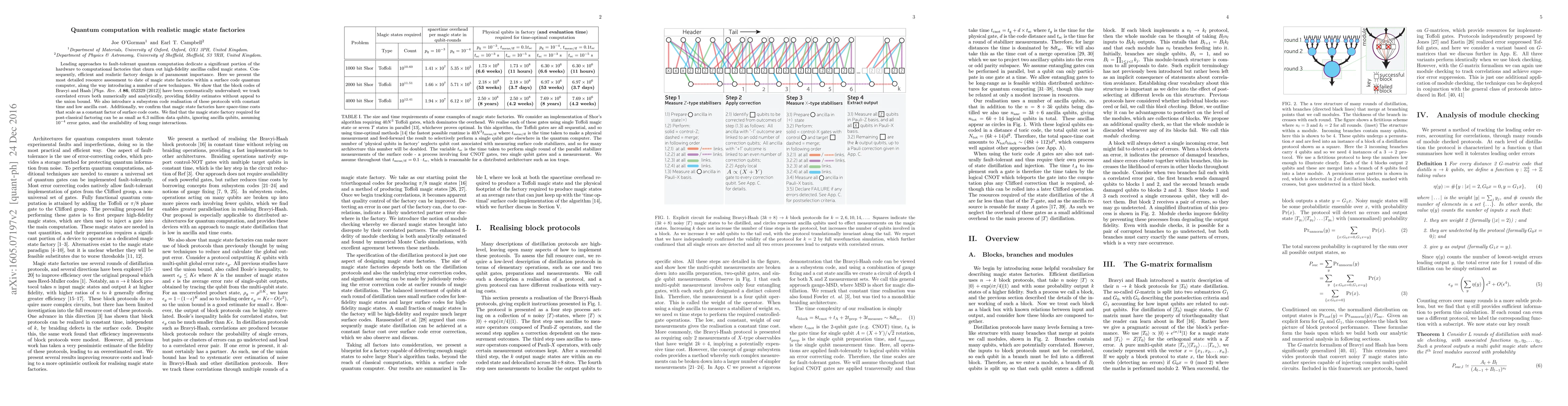 This paper provides a comprehensive resource assessment of magic state factories for fault-tolerant quantum computation, introducing new techniques and showing that block codes have been undervalued. It confirms that magic state factories have a constant factor scaling with surface code costs and estimates the factory size needed for post-classical factoring.
