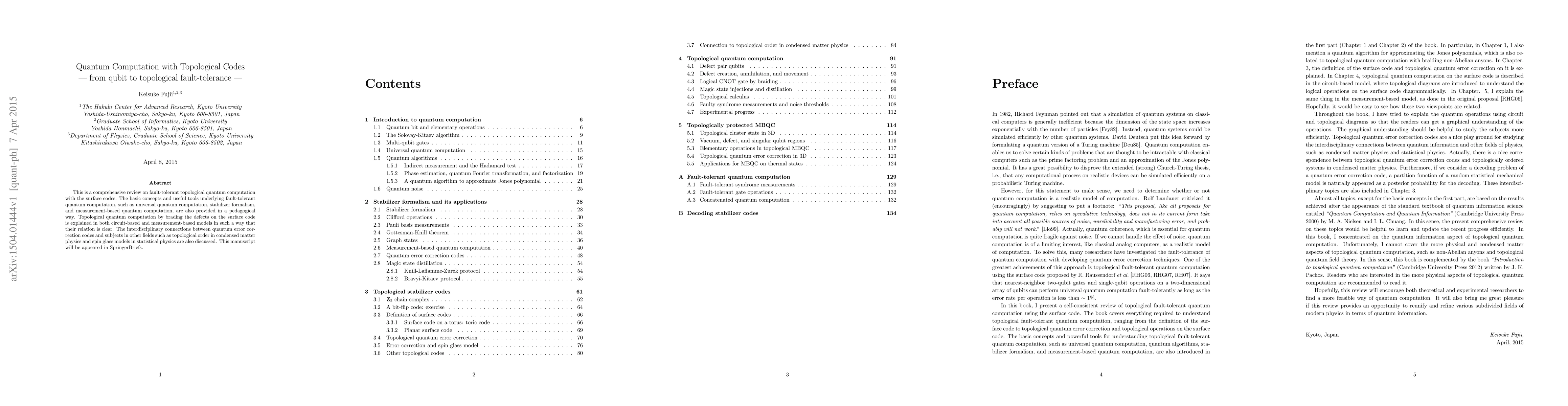 This paper reviews fault-tolerant topological quantum computation using surface codes, explaining fundamental concepts like universal quantum computation and stabilizer formalism. It also explores the interdisciplinary links between quantum error correction and condensed matter physics, alongside both circuit-based and measurement-based models of topological quantum computation.