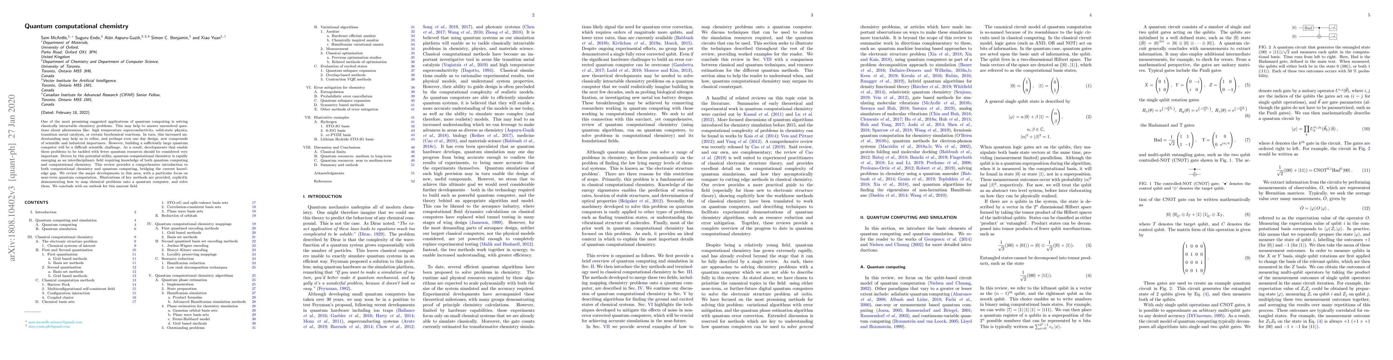 One of the most promising suggested applications of quantum computing is solving classically intractable chemistry problems. This may help to answer unresolved questions about phenomena like: high temperature superconductivity, solid-state physics, transition metal catalysis, or certain biochemical reactions. In turn, this increased understanding may help us to refine, and perhaps even one day design, new compounds of scientific and industrial importance. However, building a sufficiently large quantum computer will be a difficult scientific challenge. As a result, developments that enable these problems to be tackled with fewer quantum resources should be considered very important. Driven by this potential utility, quantum computational chemistry is rapidly emerging as an interdisciplinary field requiring knowledge of both quantum computing and computational chemistry. This review provides a comprehensive introduction to both computational chemistry and quantum computing, bridging the current knowledge gap. We review the major developments in this area, with a particular focus on near-term quantum computation. Illustrations of key methods are provided, explicitly demonstrating how to map chemical problems onto a quantum computer, and solve them. We conclude with an outlook for this nascent field.