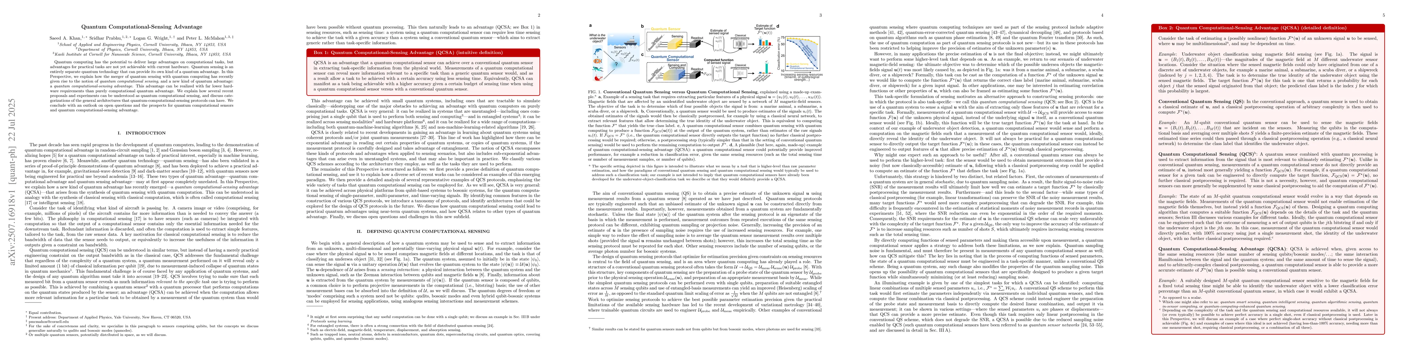 The paper discusses quantum computational sensing, a new advantage in quantum technology that merges quantum computing and sensing. This advantage requires less hardware than pure computational quantum advantage and can be seen in recent proposals and experiments. The paper categorizes architectures for quantum computational-sensing protocols and explores future prospects.