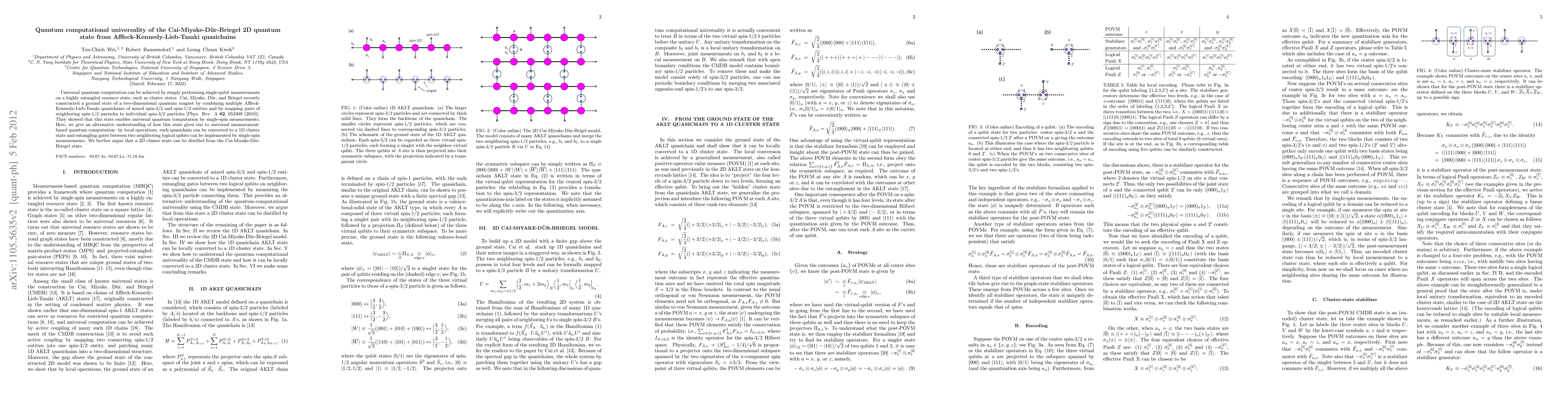 This paper explores the quantum computational universality of a 2D quantum state constructed by Cai et al. from quasichains, demonstrating that it can be transformed into a 1D cluster state, enabling universal quantum computation through single-qubit measurements and local operations.