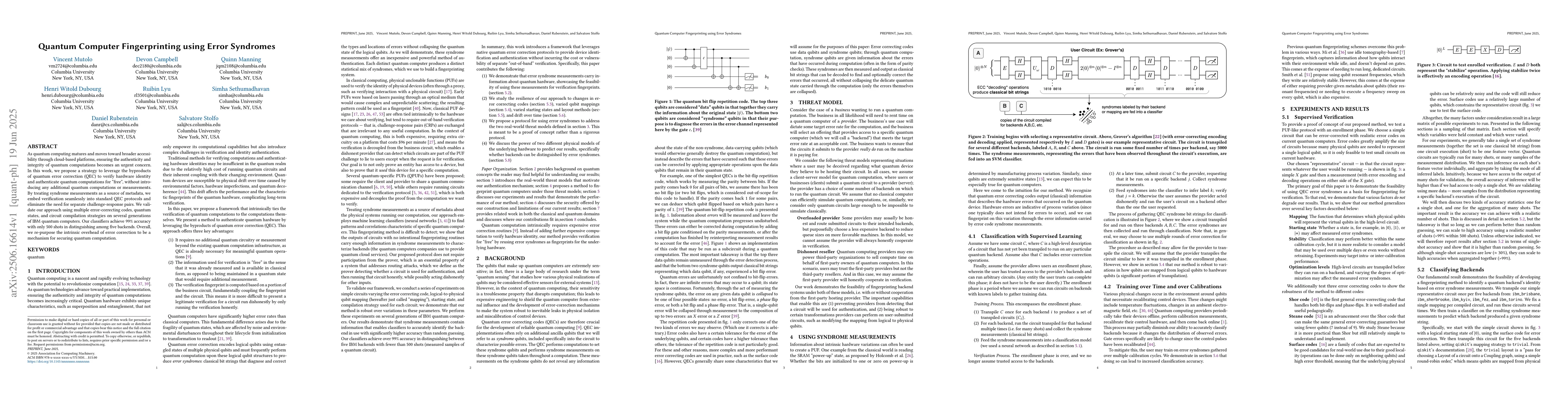 The introduction of a novel framework for leveraging error syndrome measurements as a tool for quantum device fingerprinting and authentication.