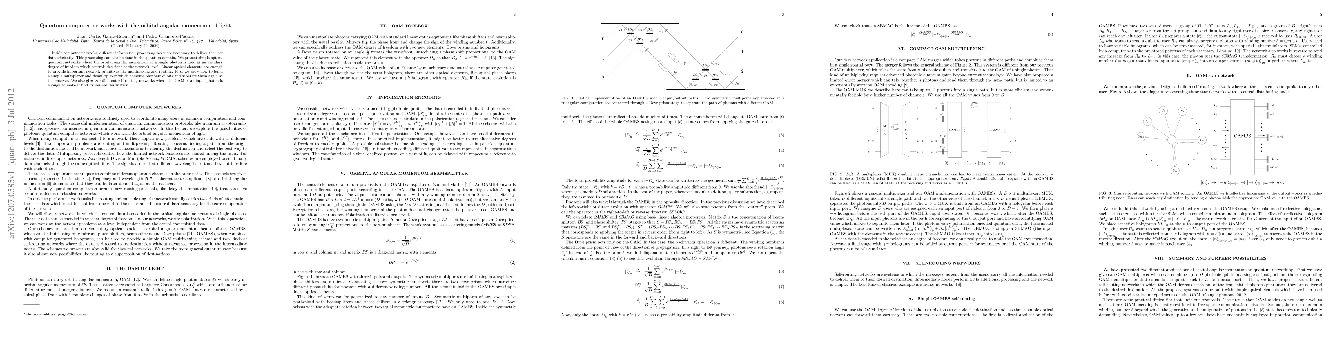 Inside computer networks, different information processing tasks are necessary to deliver the user data efficiently. This processing can also be done in the quantum domain. We present simple optical quantum networks where the orbital angular momentum of a single photon is used as an ancillary degree of freedom which controls decisions at the network level. Linear optical elements are enough to provide important network primitives like multiplexing and routing. First we show how to build a simple multiplexer and demultiplexer which combine photonic qubits and separate them again at the receiver. We also give two different self-routing networks where the OAM of an input photon is enough to make it find its desired destination.