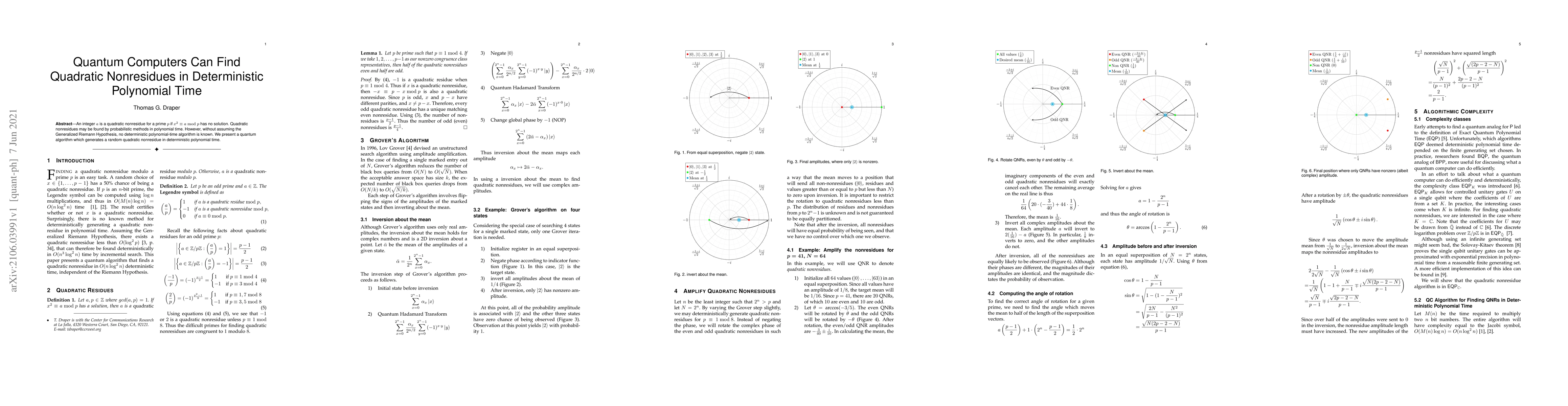 The paper introduces a quantum algorithm capable of finding quadratic nonresidues for primes in deterministic polynomial time, contrasting with existing probabilistic methods and without relying on the Generalized Riemann Hypothesis. This advancement provides a deterministic solution previously unattainable in polynomial time.