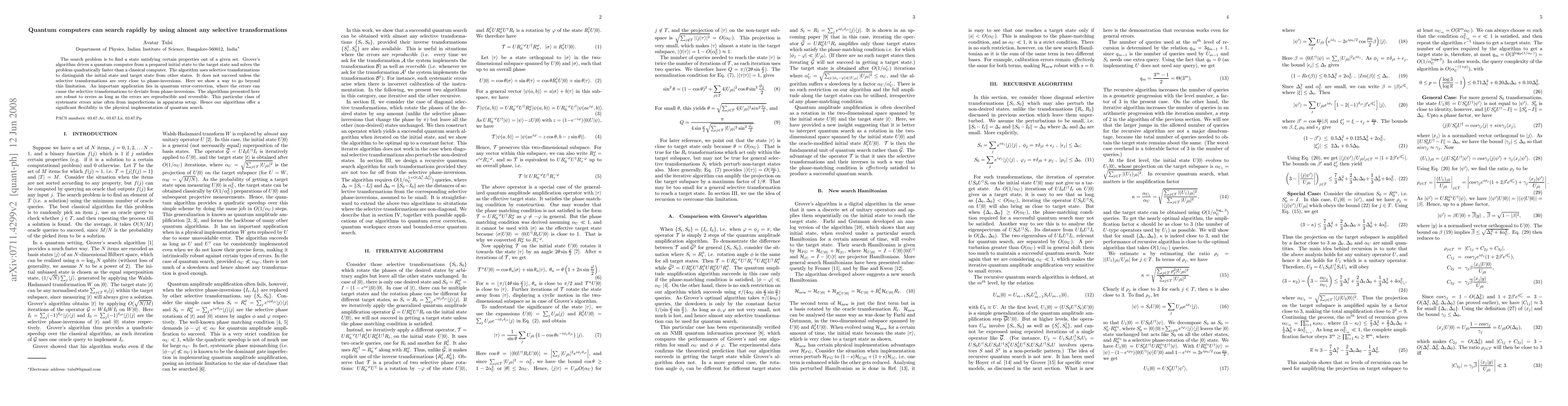 The search problem is to find a state satisfying certain properties out of a given set. Grover's algorithm drives a quantum computer from a prepared initial state to the target state and solves the problem quadratically faster than a classical computer. The algorithm uses selective transformations to distinguish the initial state and target state from other states. It does not succeed unless the selective transformations are very close to phase-inversions. Here we show a way to go beyond this limitation. An important application lies in quantum error-correction, where the errors can cause the selective transformations to deviate from phase-inversions. The algorithms presented here are robust to errors as long as the errors are reproducible and reversible. This particular class of systematic errors arise often from imperfections in apparatus setup. Hence our algorithms offer a significant flexibility in the physical implementation of quantum search.