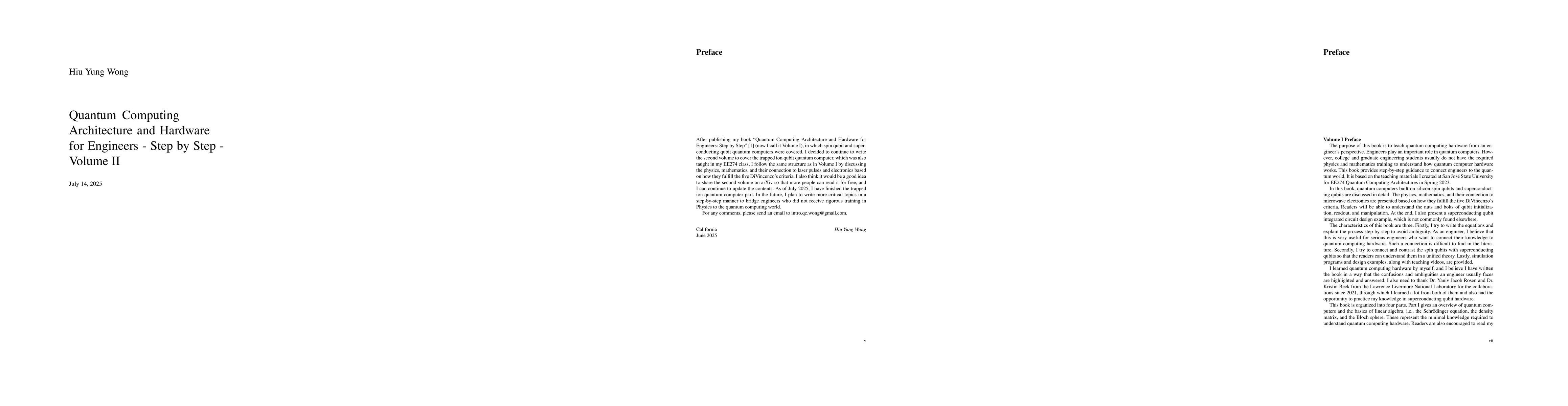 After publishing my book "Quantum Computing Architecture and Hardware for Engineers: Step by Step" [1] (now I call it Volume I), in which spin qubit and superconducting qubit quantum computers were covered, I decided to continue to write the second volume to cover the trapped ion qubit quantum computer, which was also taught in my EE274 class. I follow the same structure as in Volume I by discussing the physics, mathematics, and their connection to laser pulses and electronics based on how they fulfill the five DiVincenzo's criteria. I also think it would be a good idea to share the second volume on arXiv so that more people can read it for free, and I can continue to update the contents. As of July 2025, I have finished the trapped ion quantum computer part. In the future, I plan to write more critical topics in a step-by-step manner to bridge engineers who did not receive rigorous training in Physics to the quantum computing world.
