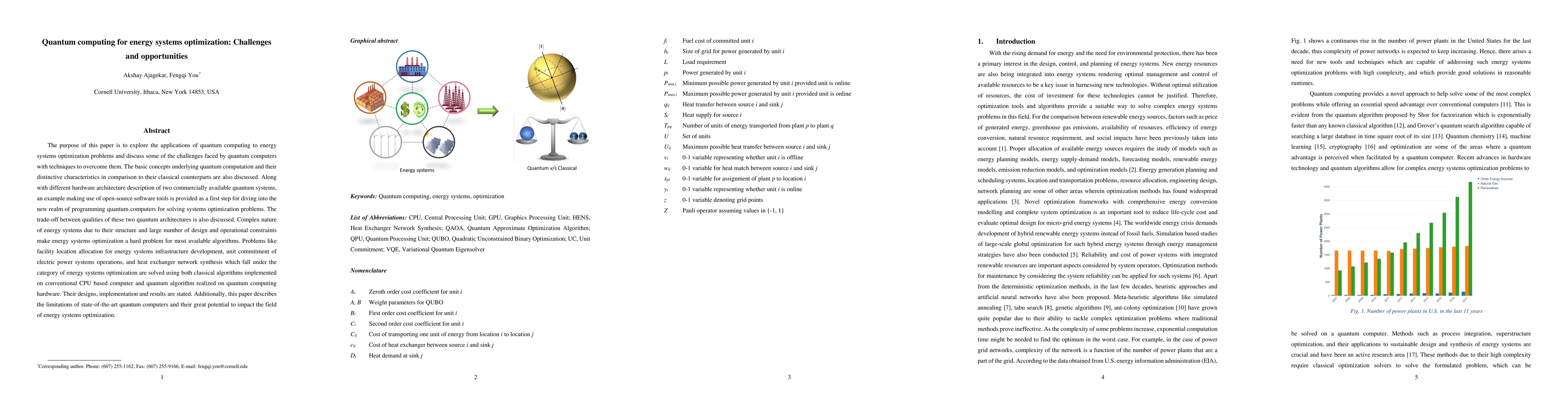 This paper explores quantum computing applications for optimizing energy systems, addressing challenges and offering solutions. It compares classical and quantum computing techniques, evaluates two quantum architectures, and demonstrates optimization problem-solving using both classical and quantum algorithms.