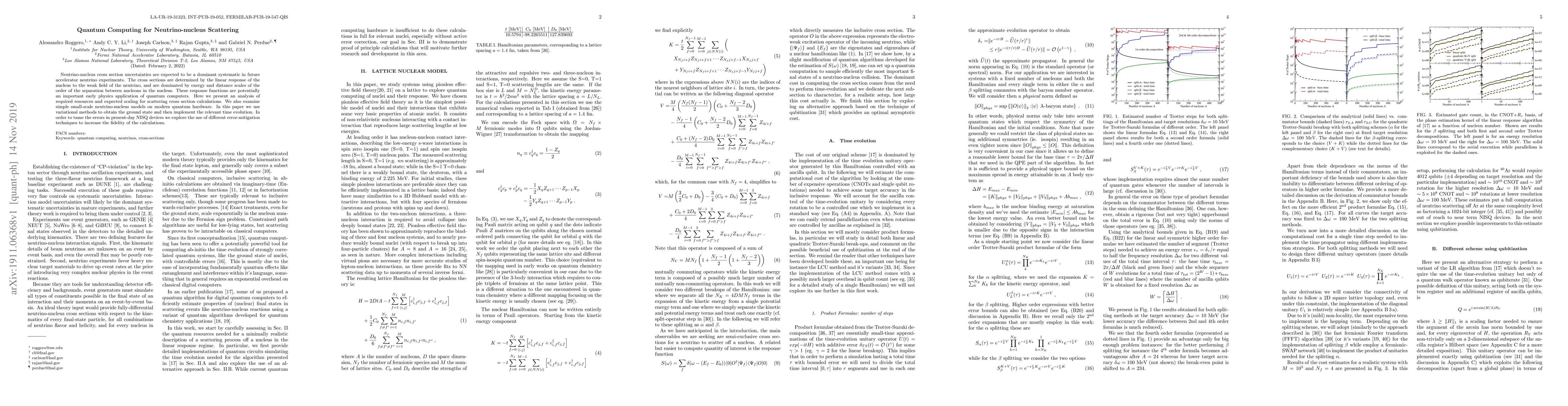 Neutrino-nucleus cross section uncertainties are expected to be a dominant systematic in future accelerator neutrino experiments. The cross sections are determined by the linear response of the nucleus to the weak interactions of the neutrino, and are dominated by energy and distance scales of the order of the separation between nucleons in the nucleus. These response functions are potentially an important early physics application of quantum computers. Here we present an analysis of the resources required and their expected scaling for scattering cross section calculations. We also examine simple small-scale neutrino-nucleus models on modern quantum hardware. In this paper, we use variational methods to obtain the ground state of a three nucleon system (the triton) and then implement the relevant time evolution. In order to tame the errors in present-day NISQ devices, we explore the use of different error-mitigation techniques to increase the fidelity of the calculations.