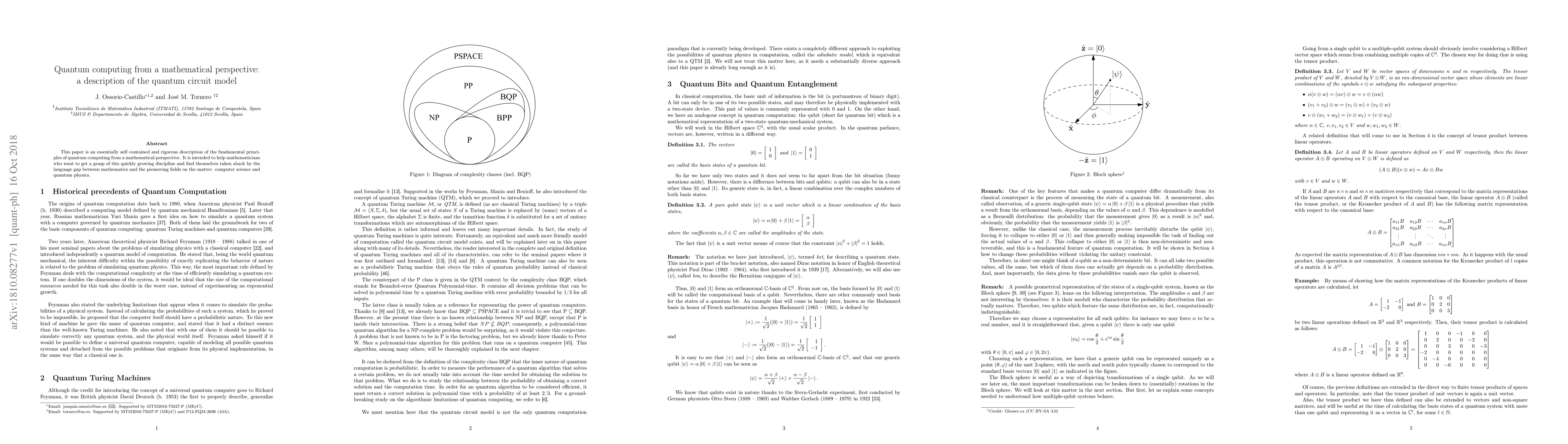 This paper is an essentially self-contained and rigorous description of the fundamental principles of quantum computing from a mathematical perspective. It is intended to help mathematicians who want to get a grasp of this quickly growing discipline and find themselves taken aback by the language gap between mathematics and the pioneering fields on the matter: computer science and quantum physics.