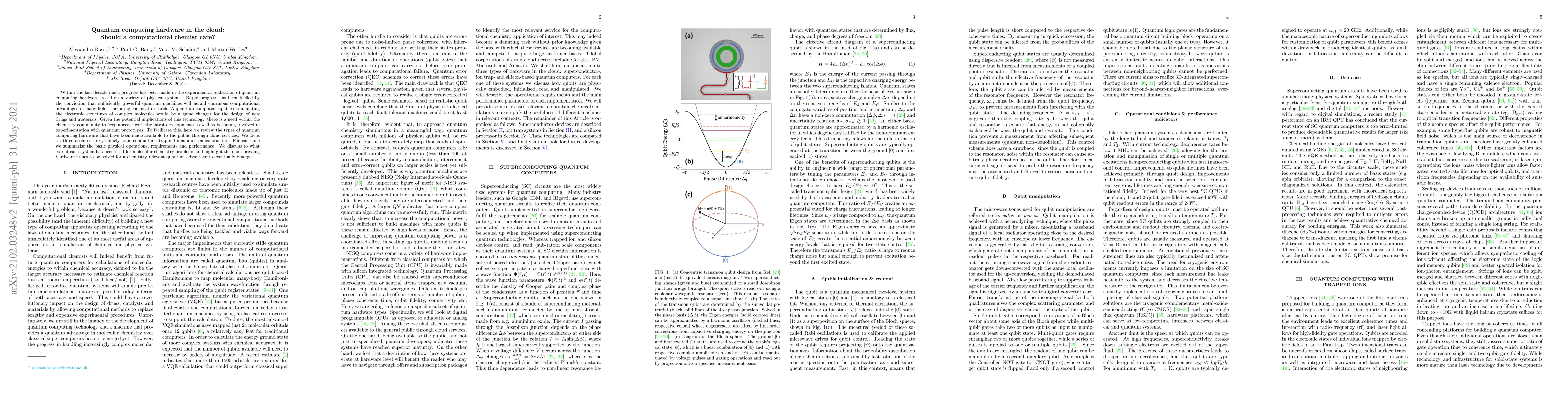This paper reviews quantum computing hardware accessible via cloud services, focusing on superconductors, trapped ions, and semiconductors. It emphasizes the potential for quantum computing to revolutionize computational chemistry and highlights the current status and challenges of these systems for molecular simulations.