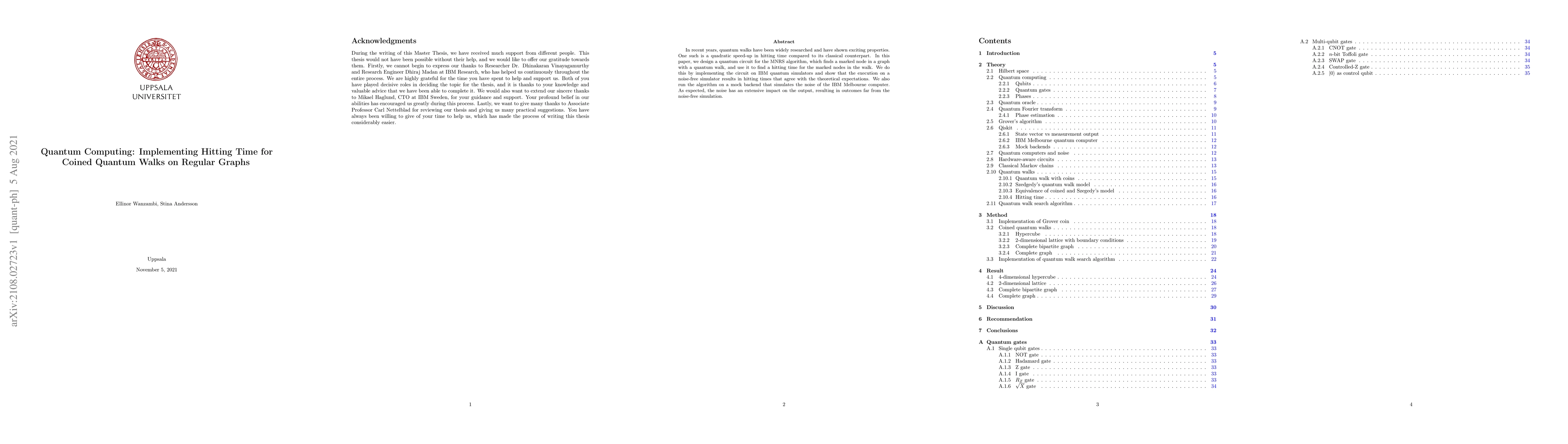 Researchers design a quantum circuit for calculating hitting times in graph walks, achieving quadratic speed-up over classical counterparts; the implementation shows promising results on noise-free simulators but noisy simulations deviate significantly from expectations.