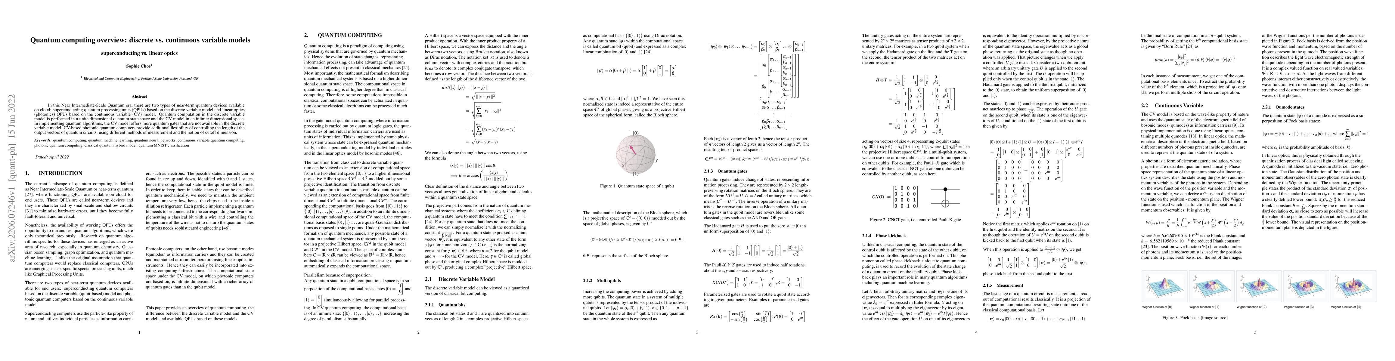 In this Near Intermediate-Scale Quantum era, there are two types of near-term quantum devices available on cloud: superconducting quantum processing units (QPUs) based on the discrete variable model and linear optics (photonics) QPUs based on the continuous variable (CV) model. Quantum computation in the discrete variable model is performed in a finite dimensional quantum state space and the CV model in an infinite dimensional space. In implementing quantum algorithms, the CV model offers more quantum gates that are not available in the discrete variable model. CV-based photonic quantum computers provide additional flexibility of controlling the length of the output vectors of quantum circuits, using different methods of measurement and the notion of cutoff dimension.
