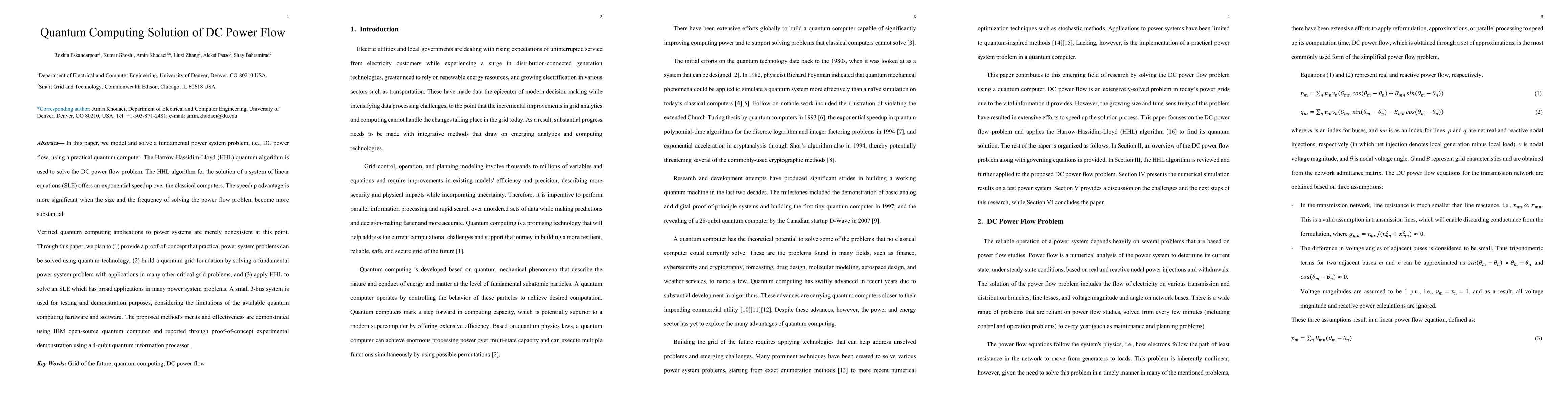 This research demonstrates the potential of quantum computing for solving fundamental power system problems