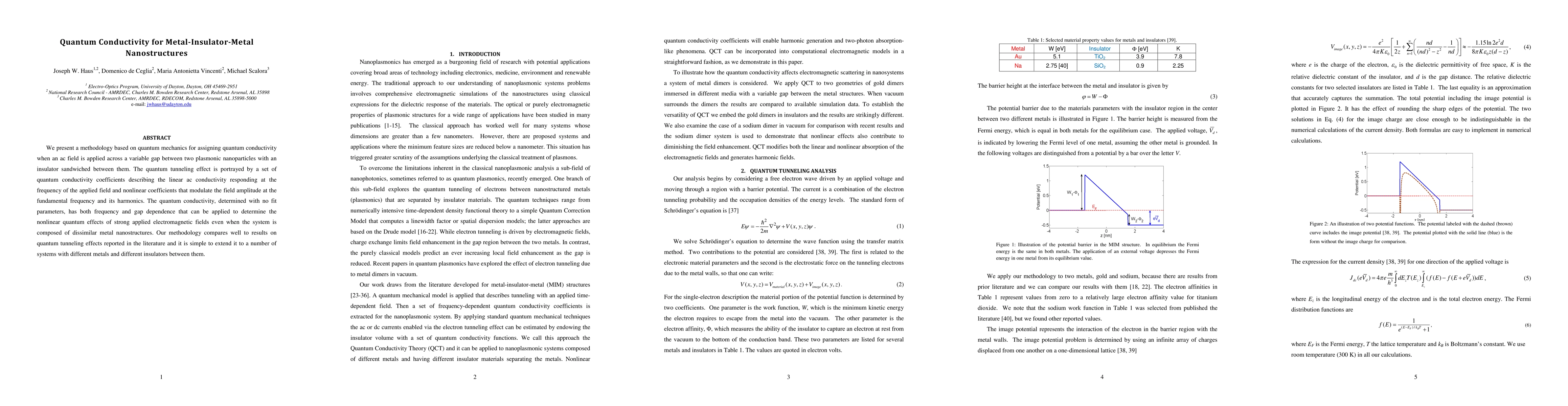 We present a methodology based on quantum mechanics for assigning quantum conductivity when an ac field is applied across a variable gap between two plasmonic nanoparticles with an insulator sandwiched between them. The quantum tunneling effect is portrayed by a set of quantum conductivity coefficients describing the linear ac conductivity responding at the frequency of the applied field and nonlinear coefficients that modulate the field amplitude at the fundamental frequency and its harmonics. The quantum conductivity, determined with no fit parameters, has both frequency and gap dependence that can be applied to determine the nonlinear quantum effects of strong applied electromagnetic fields even when the system is composed of dissimilar metal nanostructures. Our methodology compares well to results on quantum tunneling effects reported in the literature and it is simple to extend it to a number of systems with different metals and different insulators between them.
