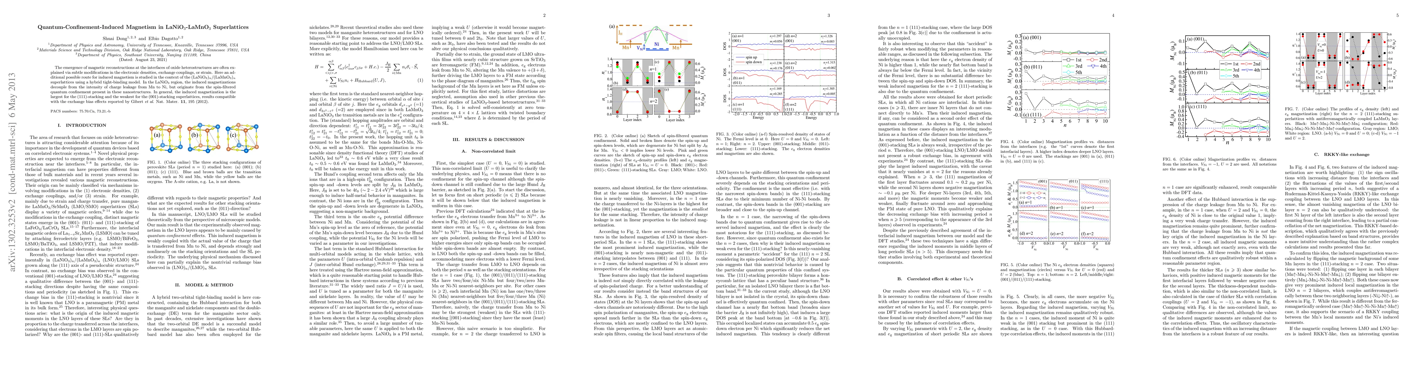 The emergence of magnetic reconstructions at the interfaces of oxide heterostructures are often explained via subtle modifications in the electronic densities, exchange couplings, or strain. Here an additional possible route for induced magnetism is studied in the context of the (LaNiO$_3$)$_n$/(LaMnO$_3$)$_n$ superlattices using a hybrid tight-binding model. In the LaNiO$_3$ region, the induced magnetizations decouple from the intensity of charge leakage from Mn to Ni, but originate from the spin-filtered quantum confinement present in these nanostructures. In general, the induced magnetization is the largest for the (111)-stacking and the weakest for the (001)-stacking superlattices, results compatible with the exchange bias effects reported by Gibert et al. Nat. Mater. 11, 195 (2012).