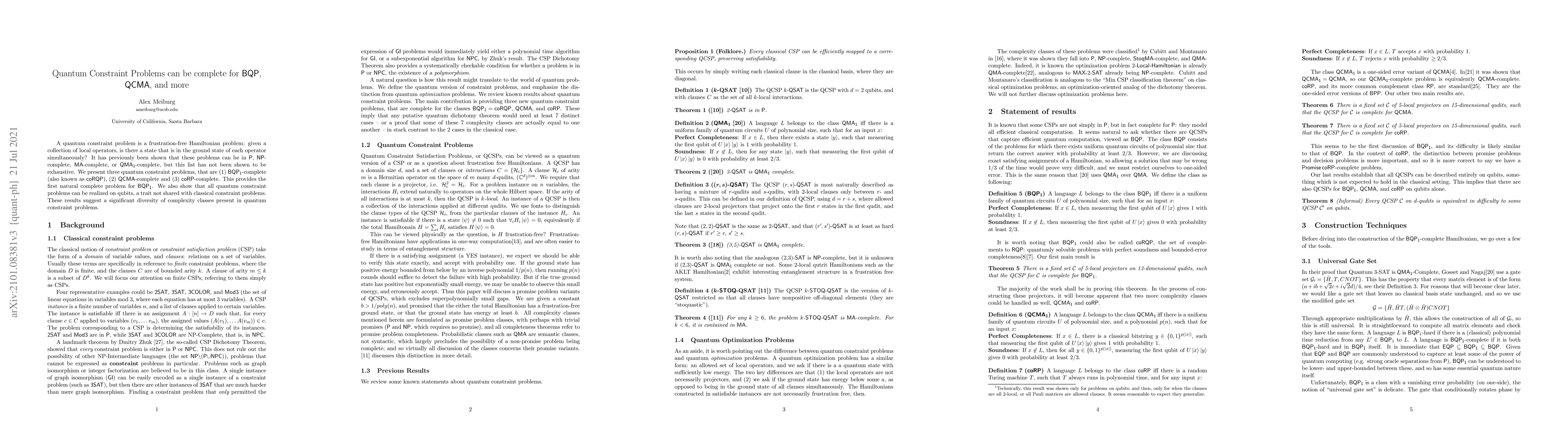 This paper introduces three natural quantum constraint problems that are complete for $\mathsf{BQP}_1$, $\mathsf{QCMA}_1$, and $\mathsf{coRP}$, highlighting the diverse complexity classes within quantum constraint problems and demonstrating their realizability on qubits.