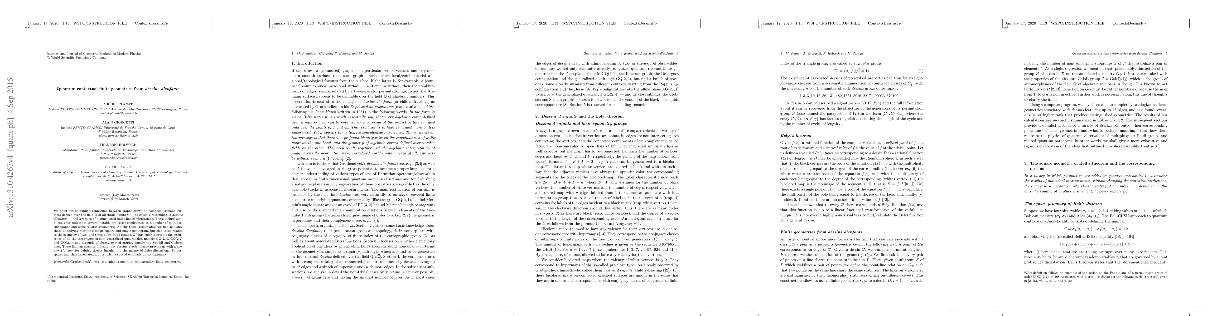 This paper establishes a connection between Grothendieck's dessins d'enfants and various quantum contextual finite geometries, including Mermin's magic square and Pauli groups, suggesting that these graphs offer new insights into the structure of finite-dimensional Hilbert spaces and contextuality.