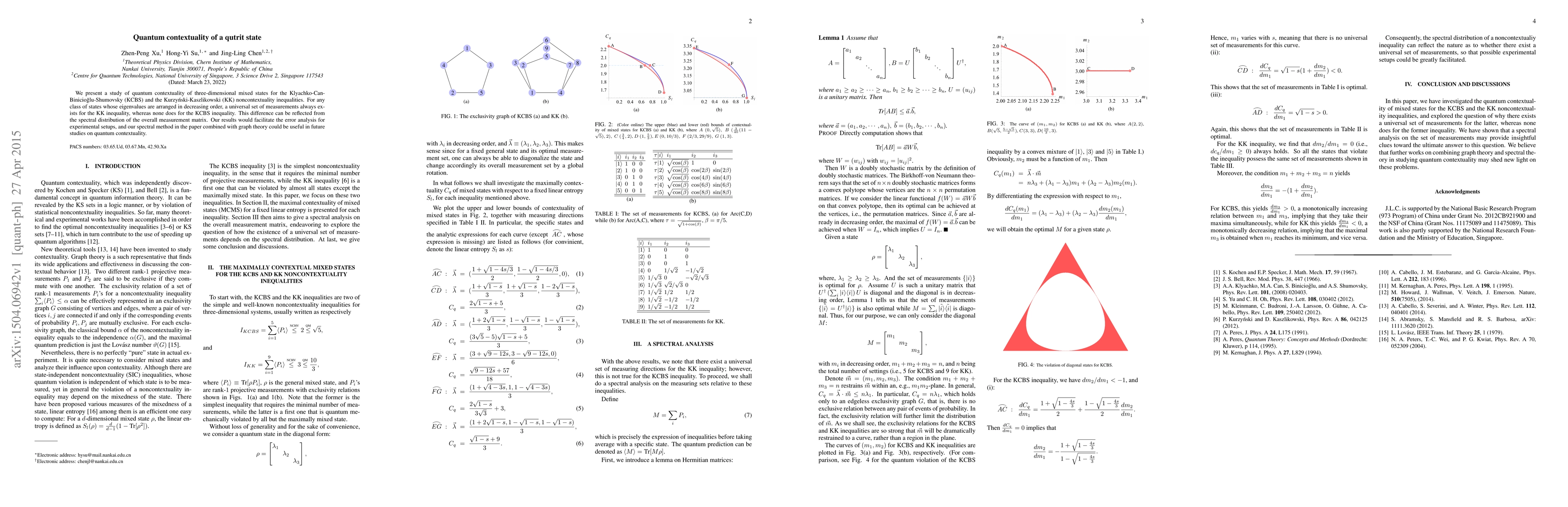Researchers studied quantum contextuality in three-dimensional states, finding that a universal set of measurements exists for one type of inequality but not the other, with implications for experimental error analysis and future studies.