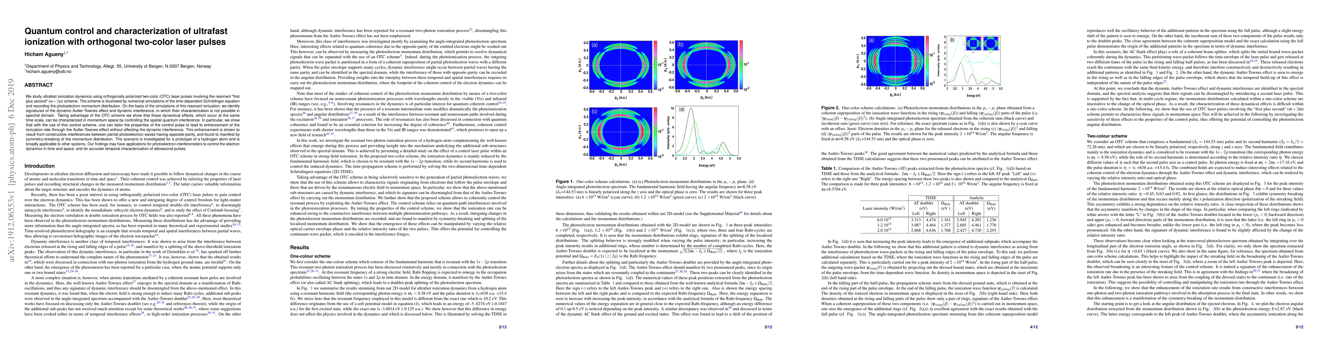 We study ultrafast ionization dynamics using orthogonally polarized two-color (OTC) laser pulses involving the resonant "first plus second" ($\omega+2\omega$) scheme. The scheme is illustrated by numerical simulations of the time-dependent Schr\"odinger equation and recording the photoelectron momentum distribution. On the basis of the simulations of this resonant ionization, we identify signatures of the dynamic Autler-Townes effect and dynamic interference, in which their characterization is not possible in spectral domain. Taking advantage of the OTC scheme we show that these dynamical effects, which occur at the same time scale, can be characterized in momentum space by controlling the spatial quantum interference. In particular, we show that with the use of this control scheme, one can tailor the properties of the control pulse to lead to enhancement of the ionization rate through the Autler-Townes effect without affecting the dynamic interference. This enhancement is shown to result from constructive interferences between partial photoelectron waves having opposite-parity, and found to manifest by symmetry-breaking of the momentum distribution. The scenario is investigated for a prototype of a hydrogen atom and is broadly applicable to other systems. Our findings may have applications for photoelectron interferometers to control the electron dynamics in time and space, and for accurate temporal characterization of attosecond pulses.