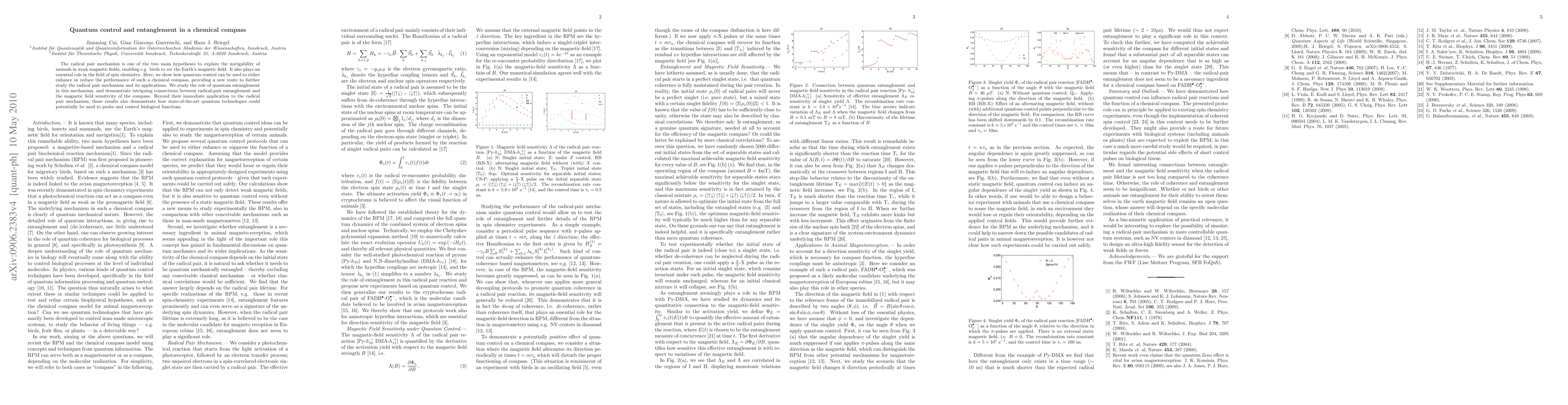 This research demonstrates how quantum control can manipulate the performance of a chemical compass, which explains animal navigation in magnetic fields. It highlights the role of quantum entanglement in this process, suggesting that advanced quantum technologies could be used to study and control biological functions.