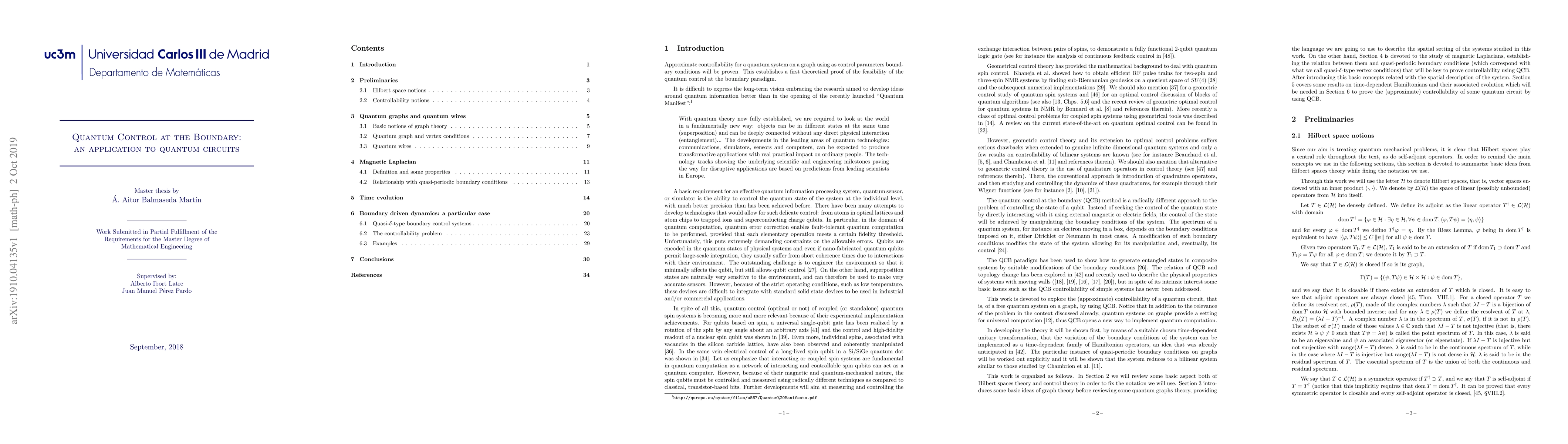 Approximate controllability for a quantum system on a graph using as control parameters boundary conditions will be proven. This establishes a first theoretical proof of the feasibility of the quantum control at the boundary paradigm. A simplified version of this results can be found in arXiv:1811.09541.
