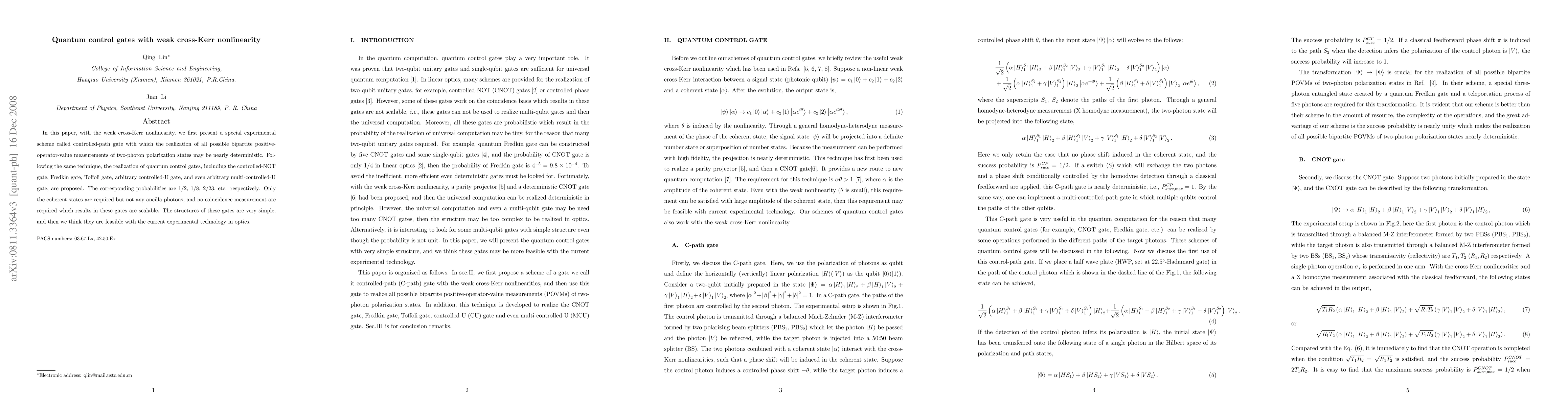 Researchers propose a new method for quantum control gates using weak cross-Kerr nonlinearity, enabling simpler and nearly deterministic realization of bipartite POVMs for two-photon polarization states.