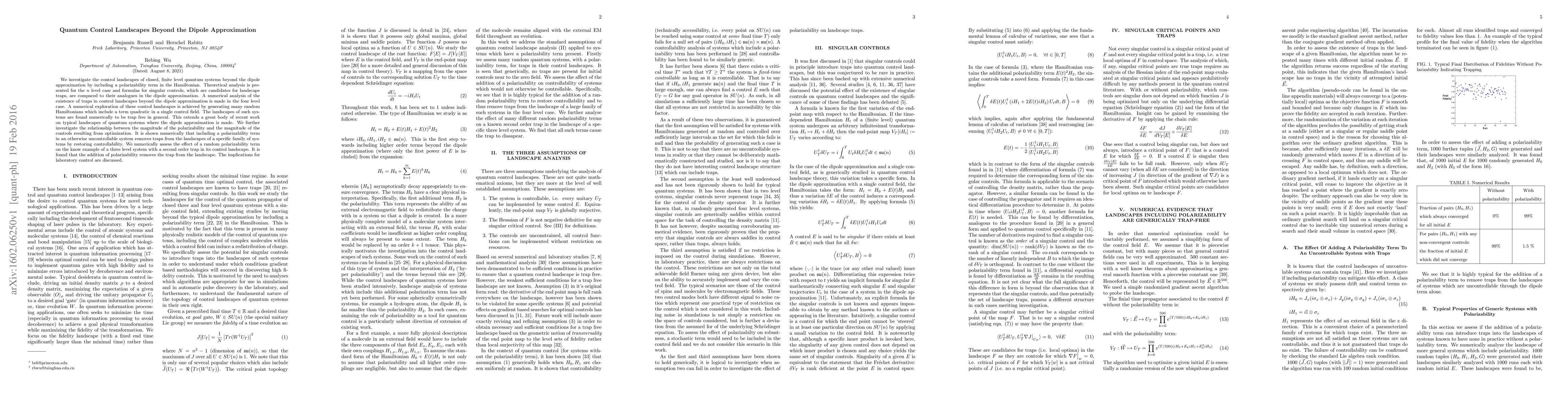 We investigate the control landscapes of closed, finite level quantum systems beyond the dipole approximation by including a polarizability term in the Hamiltonian. Theoretical analysis is presented for the $n$ level case and formulas for singular controls, which are candidates for landscape traps, are compared to their analogues in the dipole approximation. A numerical analysis of the existence of traps in control landscapes beyond the dipole approximation is made in the four level case. A numerical exploration of these control landscapes is achieved by generating many random Hamiltonians which include a term quadratic in a single control field. The landscapes of such systems are found numerically to be trap free in general. This extends a great body of recent work on typical landscapes of quantum systems where the dipole approximation is made. We further investigate the relationship between the magnitude of the polarizability and the magnitude of the controls resulting from optimization. It is shown numerically that including a polarizability term in an otherwise uncontrollable system removes traps from the landscapes of a specific family of systems by restoring controllability. We numerically assess the effect of a random polarizability term on the know example of a three level system with a second order trap in its control landscape. It is found that the addition of polarizability removes the trap from the landscape. The implications for laboratory control are discussed.