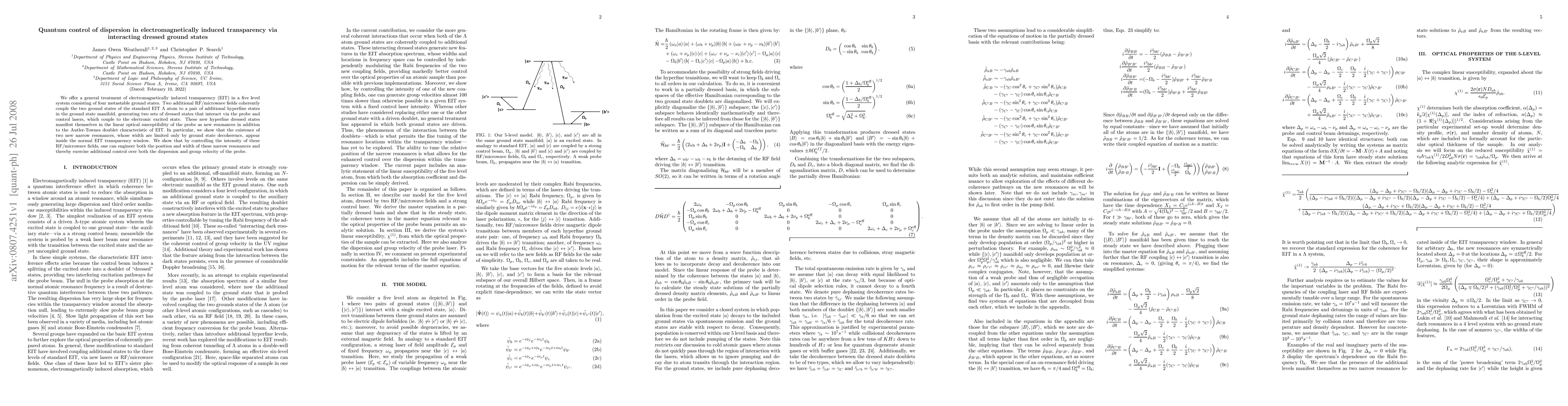 This paper explores the manipulation of electromagnetically induced transparency (EIT) in a five-level atomic system by using RF/microwave fields to create interacting dressed ground states, resulting in new resonances that control the dispersion and group velocity of the probe. The study demonstrates the ability to adjust the position and width of these resonances via the intensity of the coupling fields, offering enhanced quantum control over optical properties.