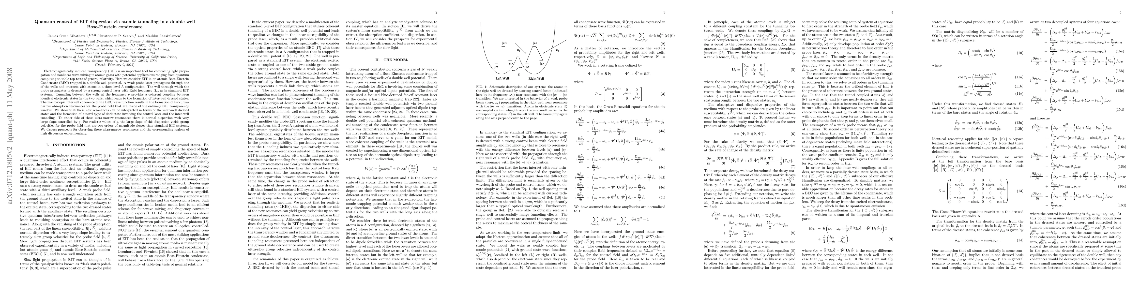 Electromagnetically induced transparency (EIT) is an important tool for controlling light propagation and nonlinear wave mixing in atomic gases with potential applications ranging from quantum computing to table top tests of general relativity. Here we consider EIT in an atomic Bose-Einstein Condensate (BEC) trapped in a double well potential. A weak probe laser propagates through one of the wells and interacts with atoms in a three-level $\Lambda$ configuration. The well through which the probe propagates is dressed by a strong control laser with Rabi frequency $\Omega_{\mu}$, as in standard EIT systems. Tunneling between the wells at the frequency $g$ provides a coherent coupling between identical electronic states in the two wells, which leads to the formation of inter-well dressed states. The tunneling in conjunction with the macroscopic interwell coherence of the BEC wave function, results in the formation of two ultra-narrow absorption resonances for the probe field that are inside of the ordinary EIT transparency window. We show that these new resonances can be interpreted in terms of the inter-well dressed states and the formation of a novel type of dark state involving the control laser and the inter-well tunneling. To either side of these ultra-narrow resonances there is normal dispersion with very large slope controlled by $g$. For realistic values of $g$, the large slope of this dispersion yields group velocities for the probe field that are two orders of magnitude slower than standard EIT systems. We discuss prospects for observing these ultra-narrow resonances and the corresponding regions of high dispersion experimentally.