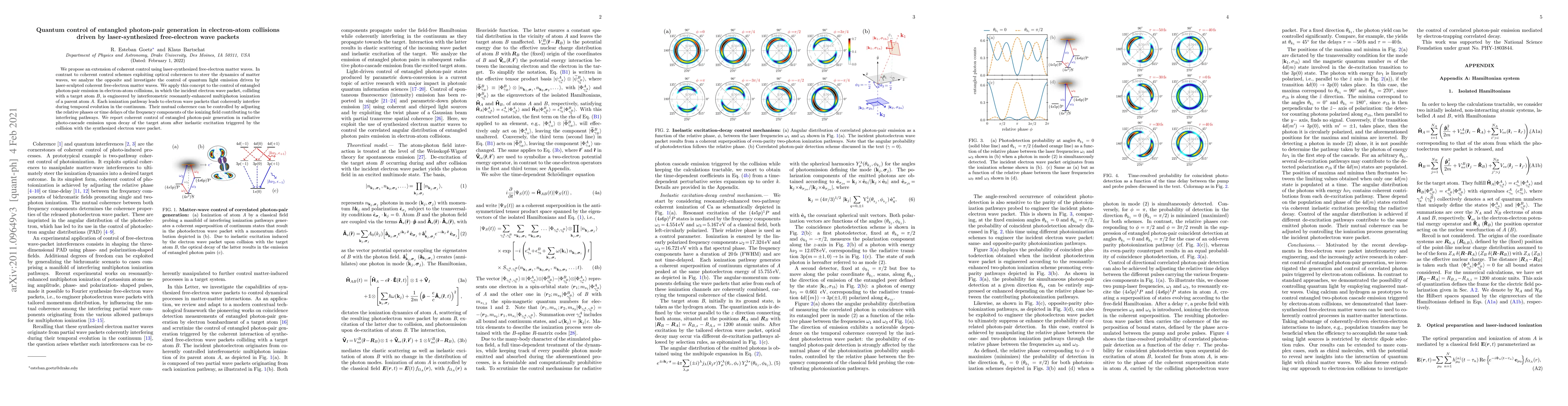 This paper proposes a method to control entangled photon-pair generation in electron-atom collisions using laser-synthesized free-electron wave packets, demonstrating coherent control over the quantum light emission driven by these engineered wave packets. The study reports successful manipulation of the entangled photon-pair emission through the coherent interference of the electron wave packets.