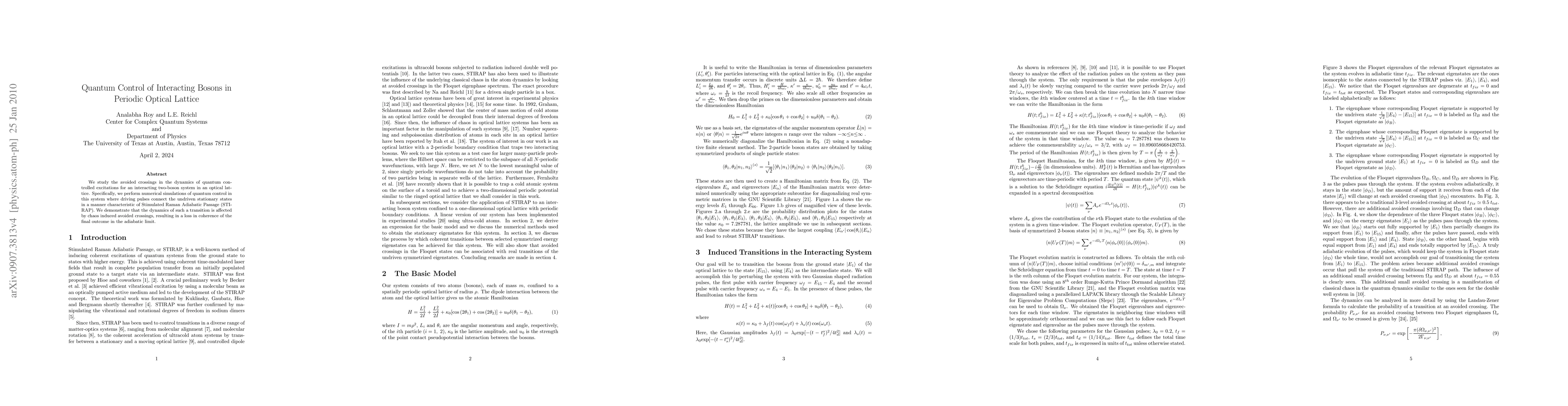 This paper investigates quantum control of interacting bosons in an optical lattice, focusing on the dynamics of avoided crossings during transitions driven by Stimulated Raman Adiabatic Passage (STIRAP). Numerical simulations reveal that chaos-induced avoided crossings lead to coherence loss in the adiabatic limit.